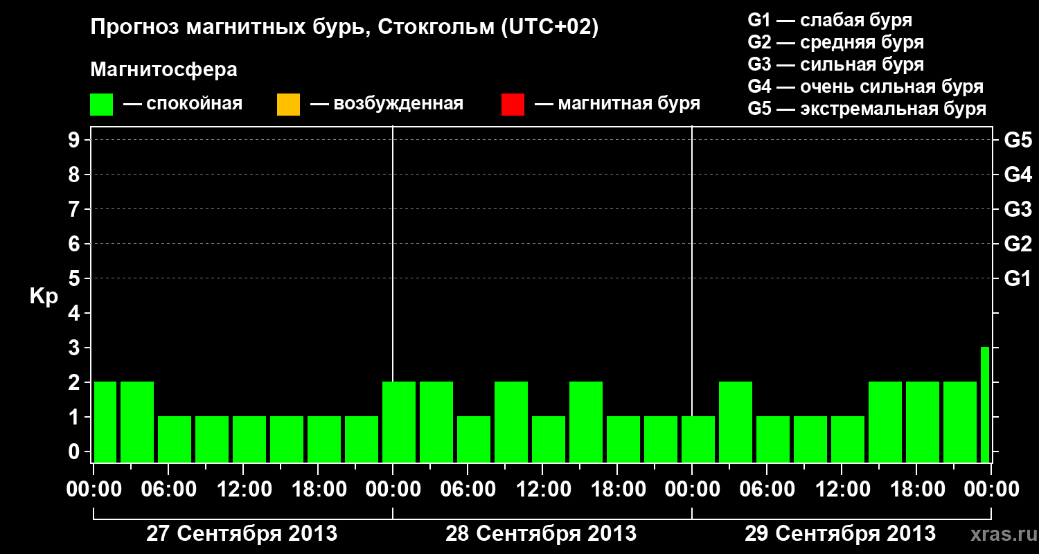 Прогноз магнитных бурь в Стокгольме — 27 сентября 2013 года