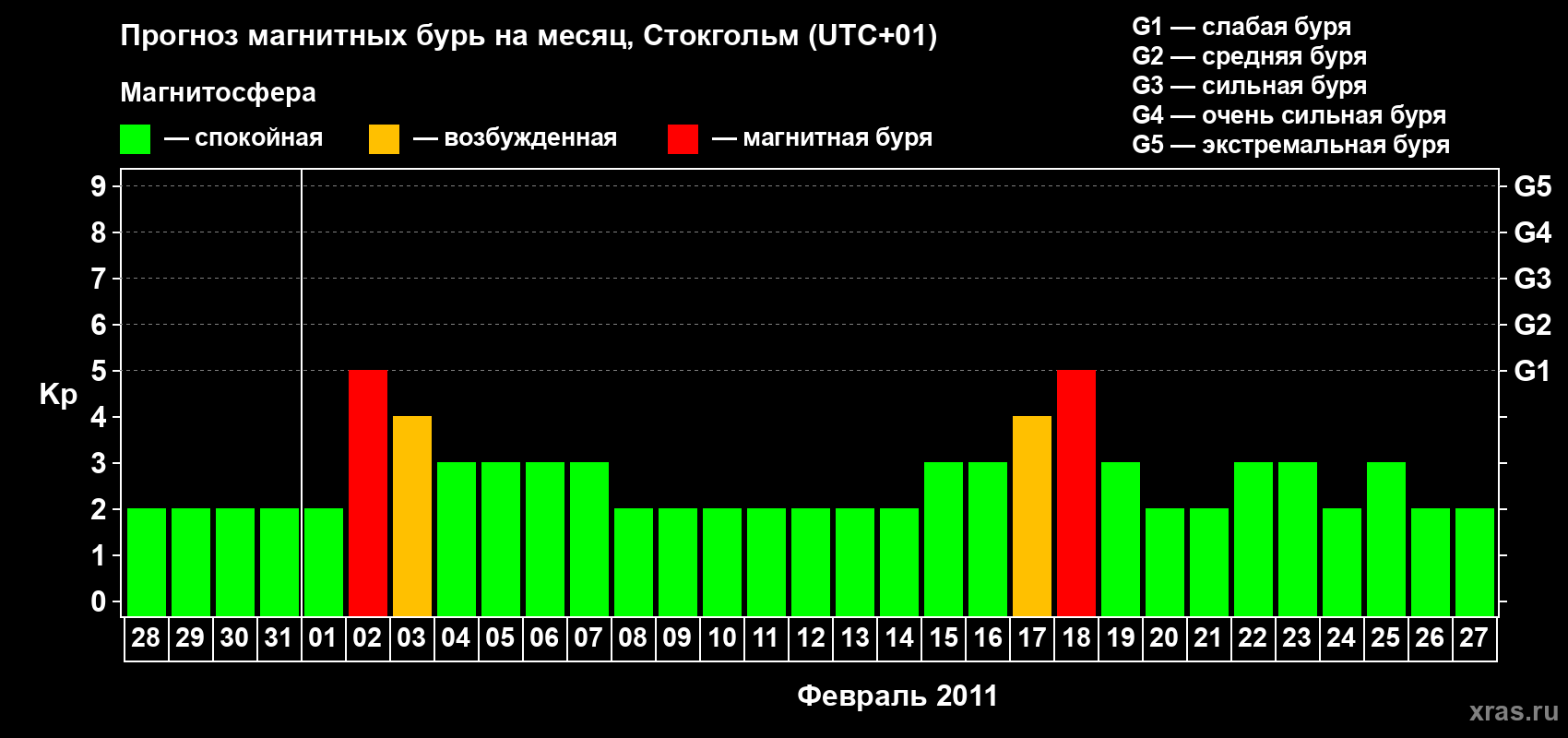 Прогноз магнитных бурь в Стокгольме — 28 января 2011 года