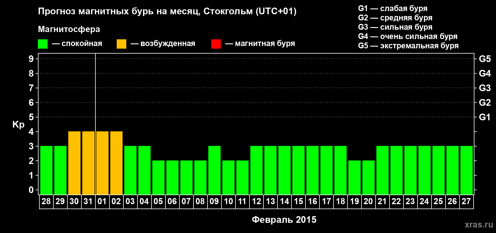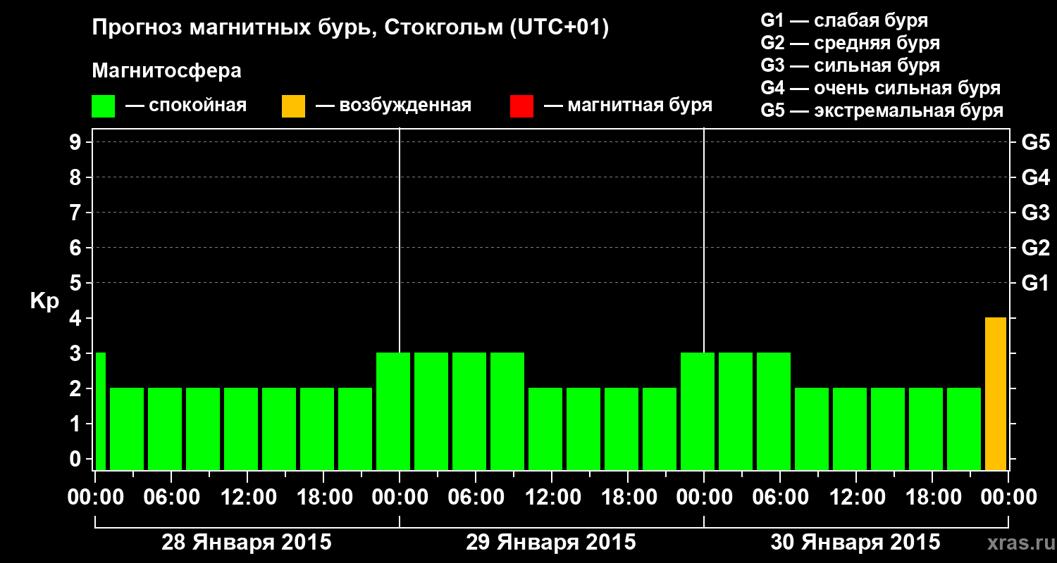 Прогноз магнитных бурь в Стокгольме — 28 января 2015 года