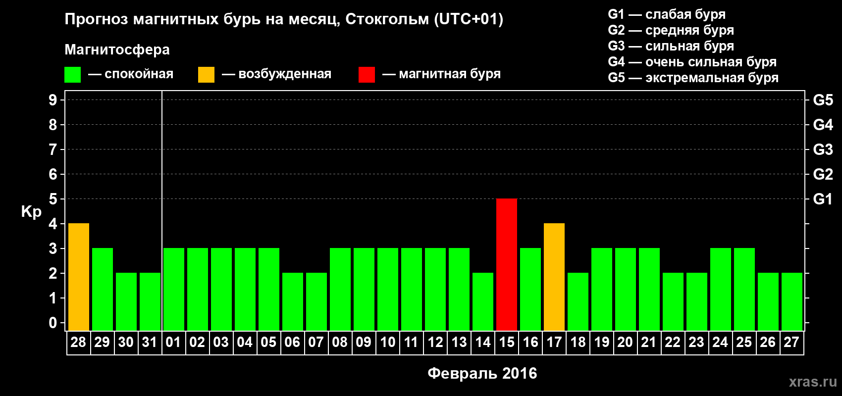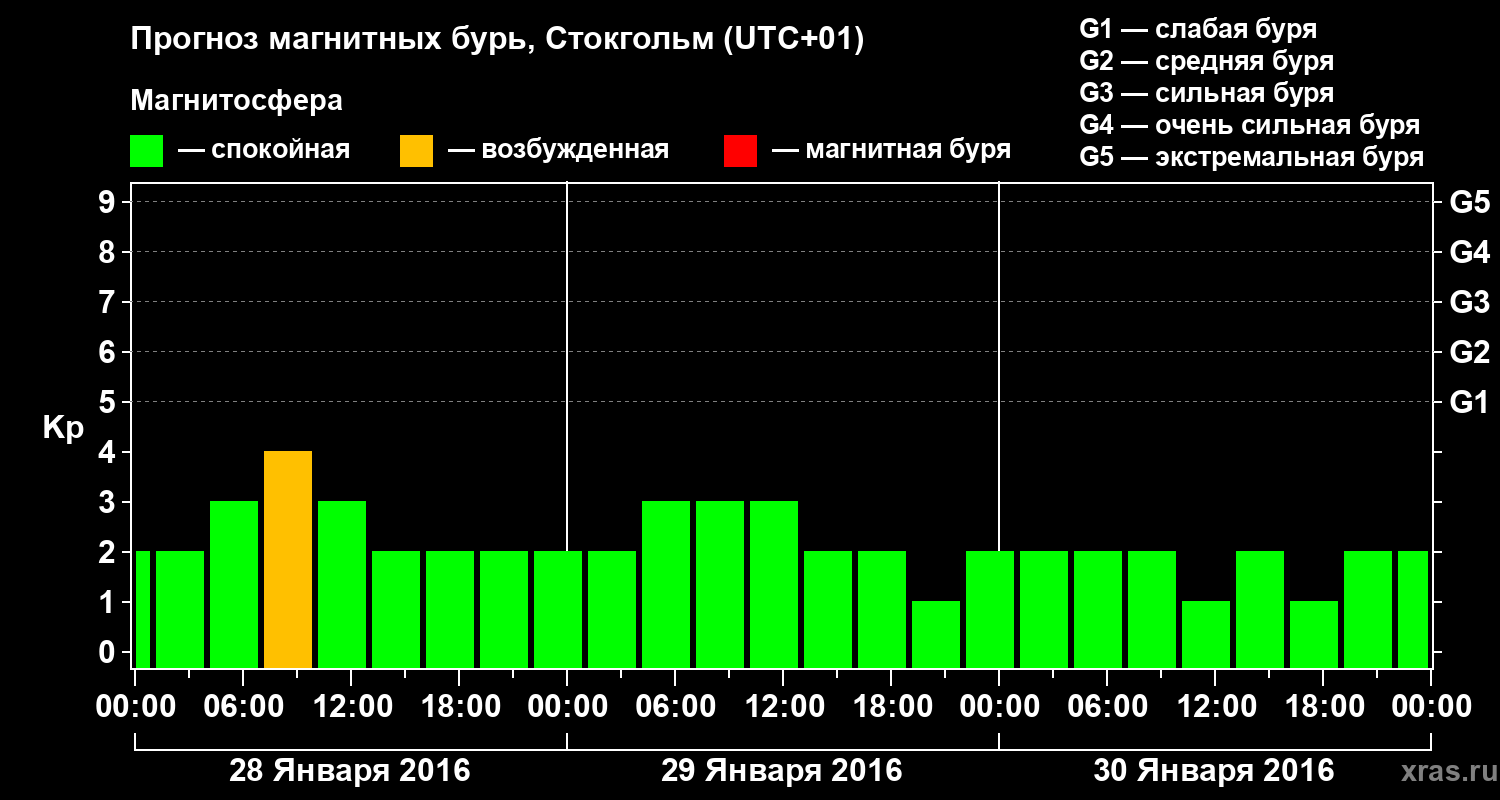 Прогноз магнитных бурь в Стокгольме — 28 января 2016 года