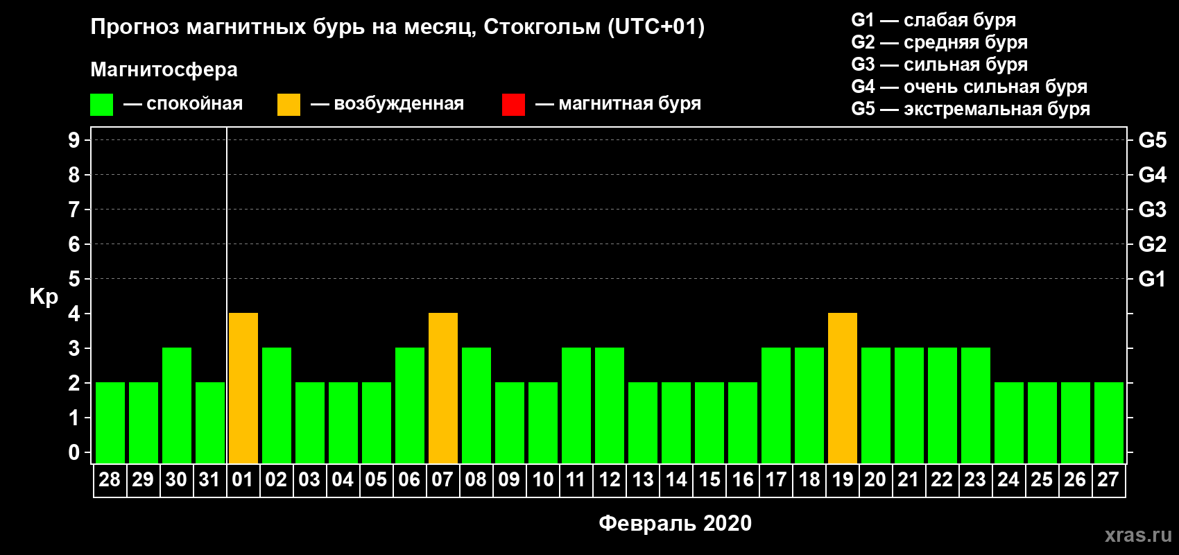 Прогноз магнитных бурь в Стокгольме — 28 января 2020 года
