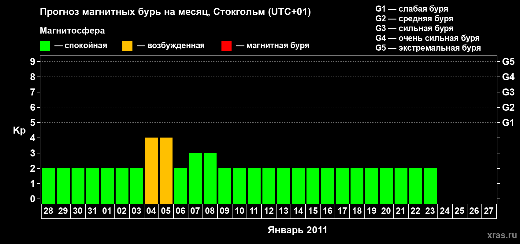 Прогноз магнитных бурь в Стокгольме — 28 декабря 2010 года