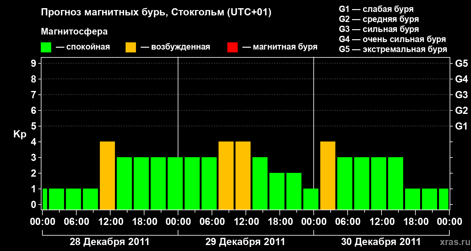 Прогноз магнитных бурь в Стокгольме — 28 декабря 2011 года