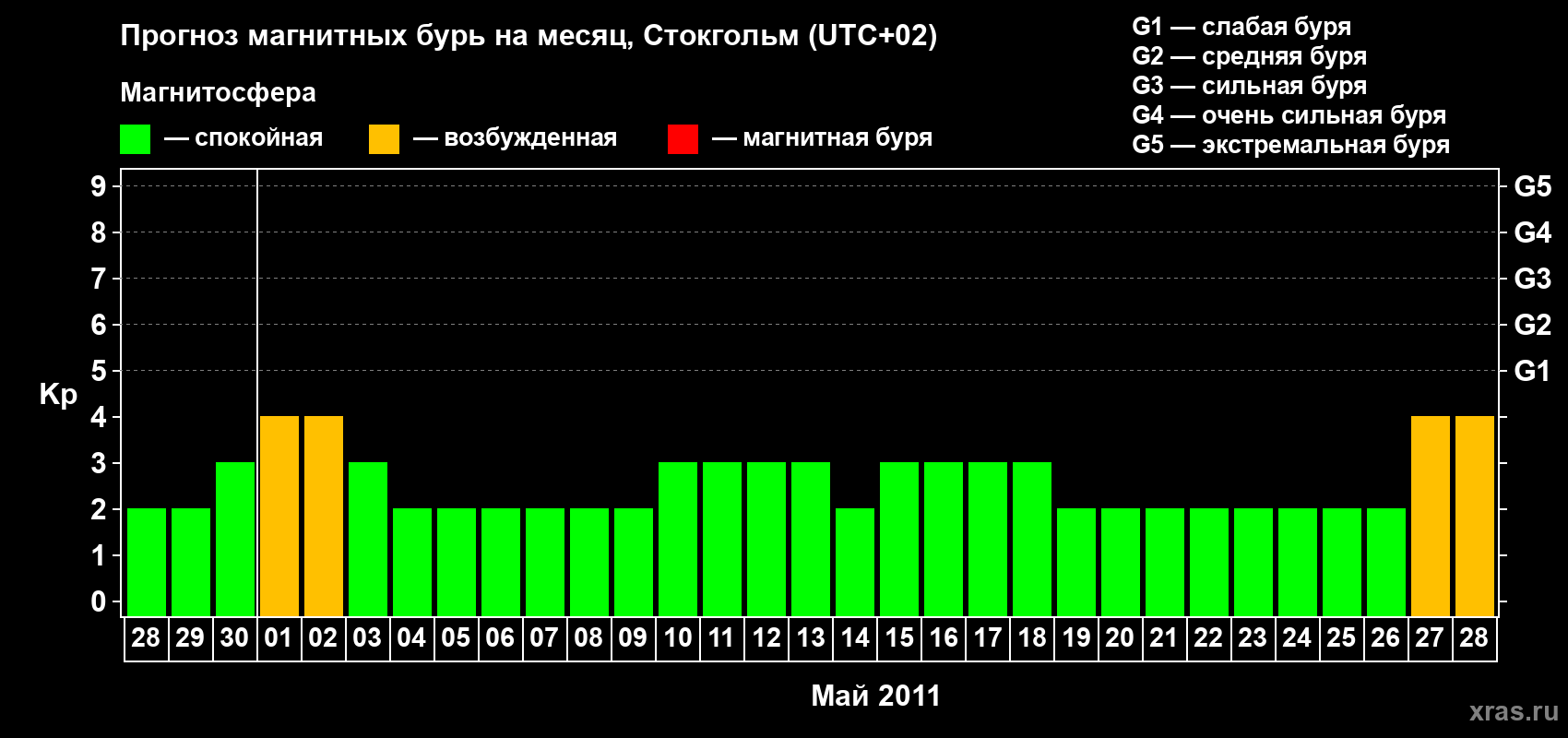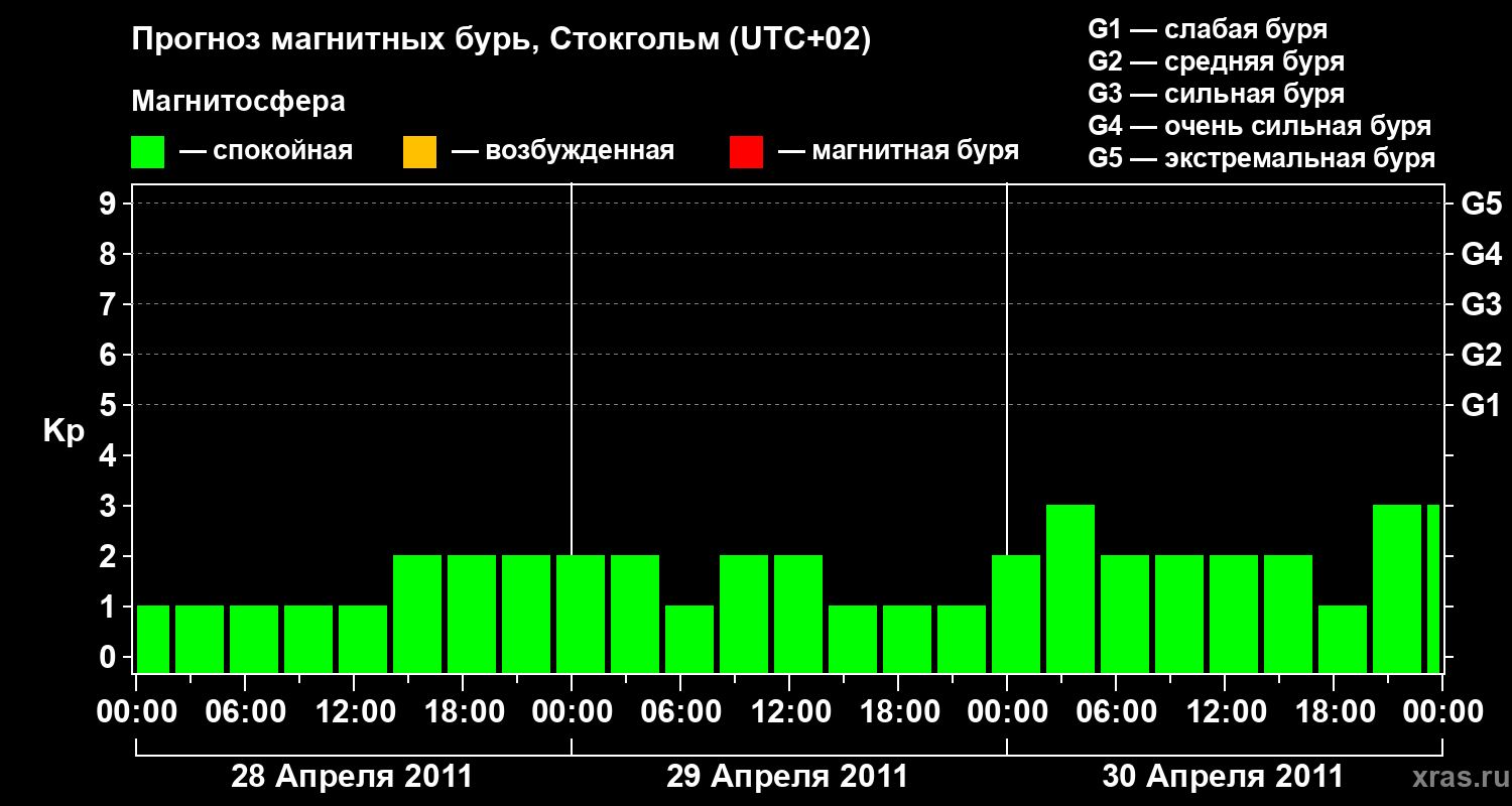 Прогноз магнитных бурь в Стокгольме — 28 апреля 2011 года