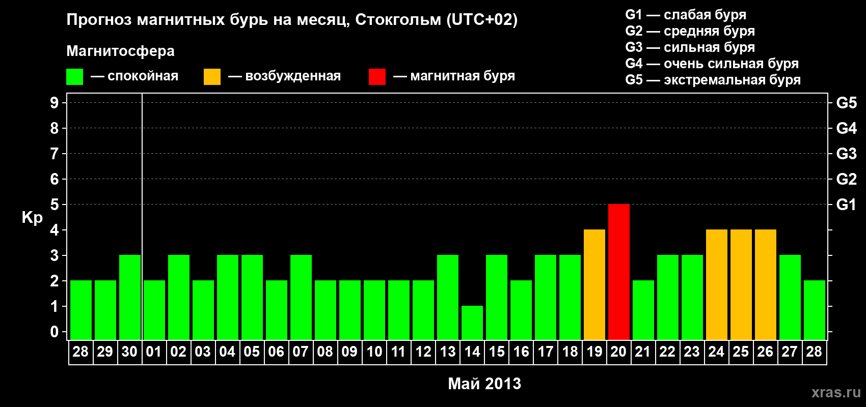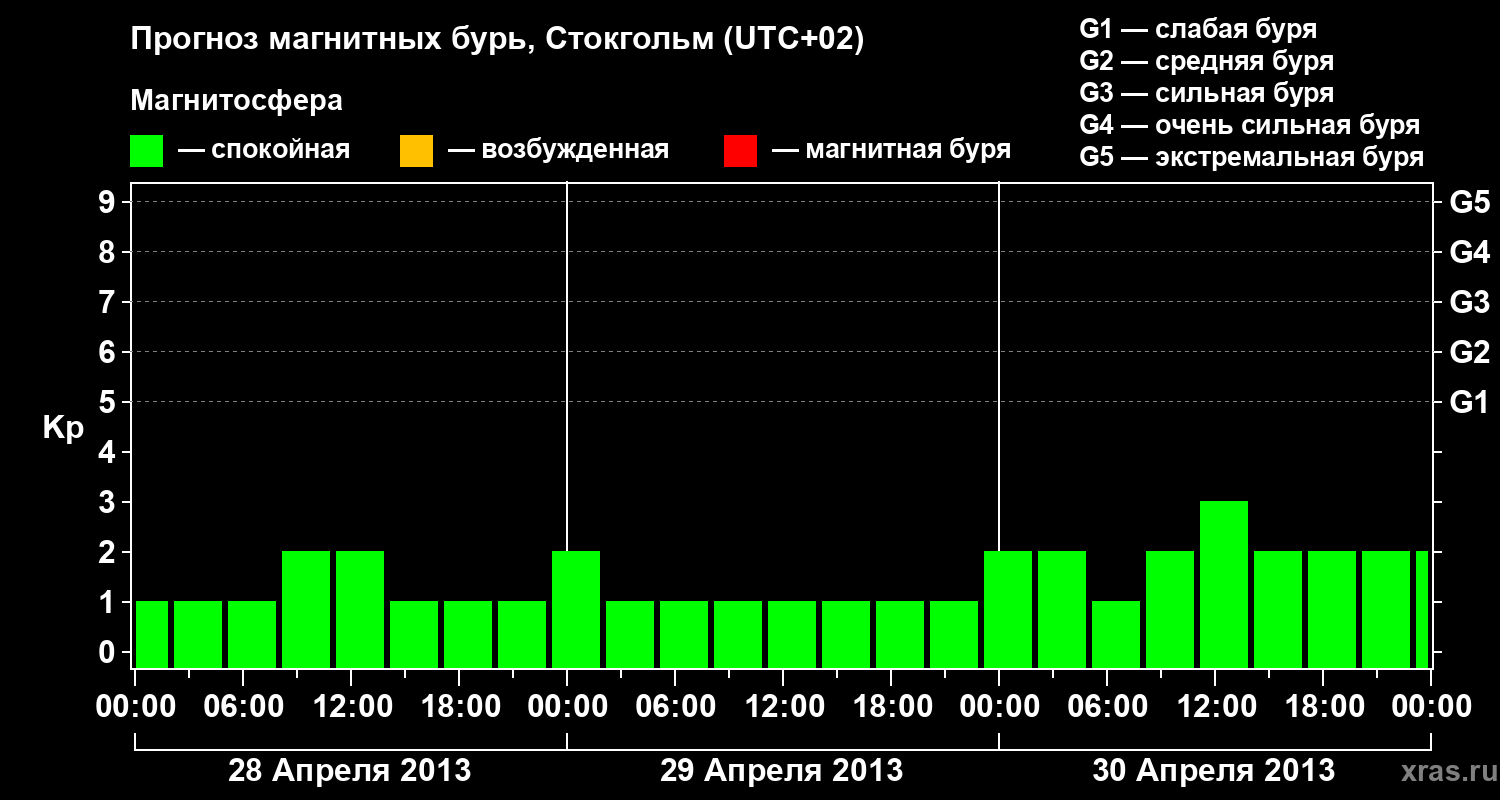 Прогноз магнитных бурь в Стокгольме — 28 апреля 2013 года