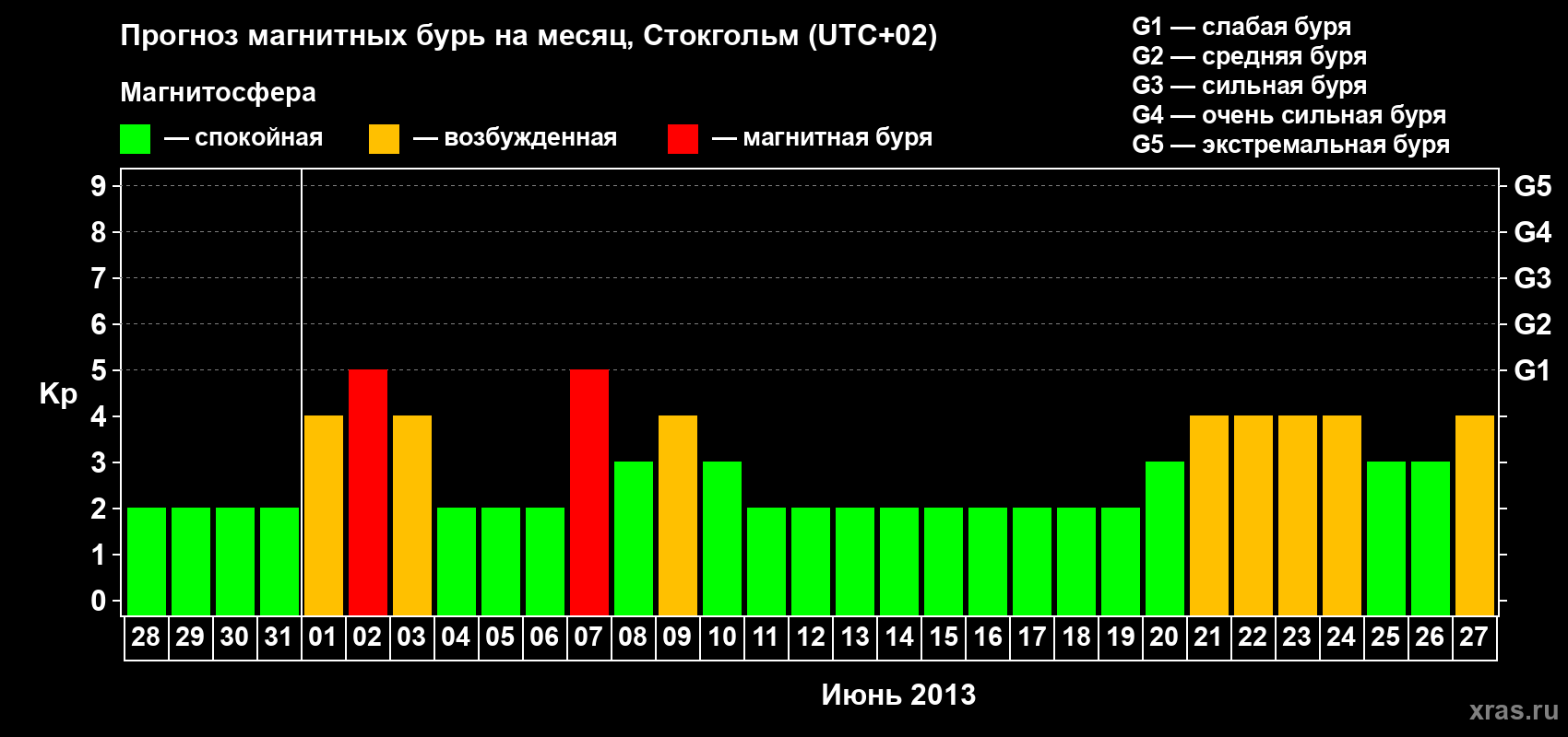 Прогноз магнитных бурь в Стокгольме — 28 мая 2013 года