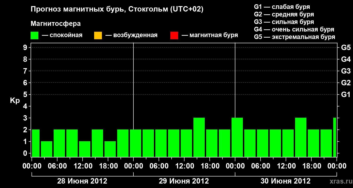 Прогноз магнитных бурь в Стокгольме — 28 июня 2012 года