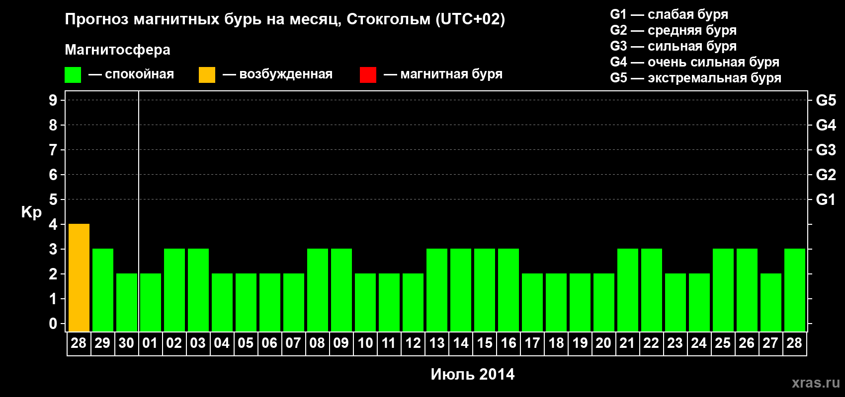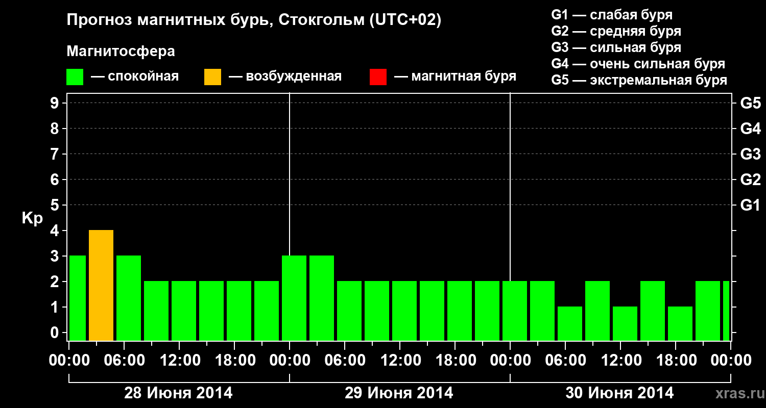 Прогноз магнитных бурь в Стокгольме — 28 июня 2014 года