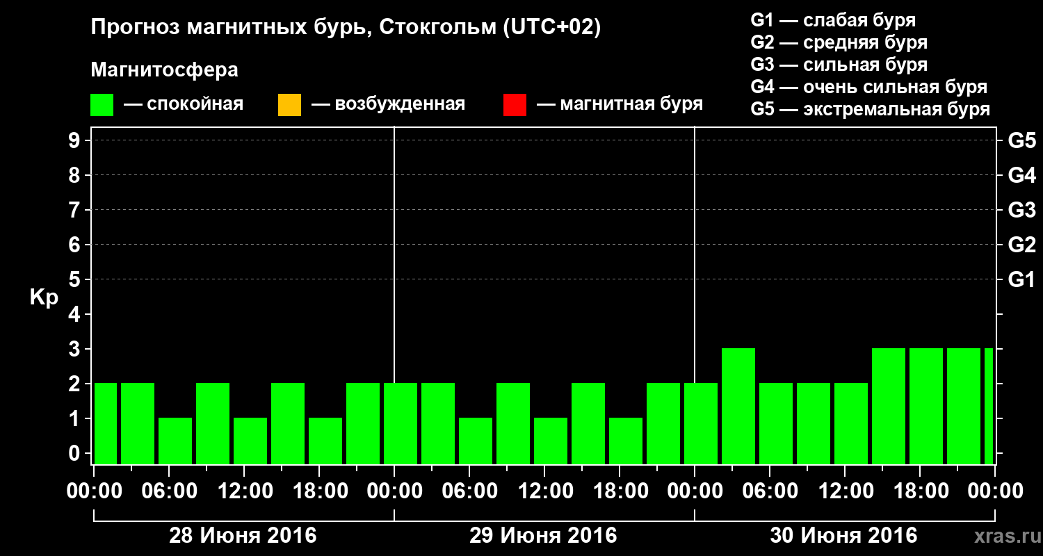 Прогноз магнитных бурь в Стокгольме — 28 июня 2016 года