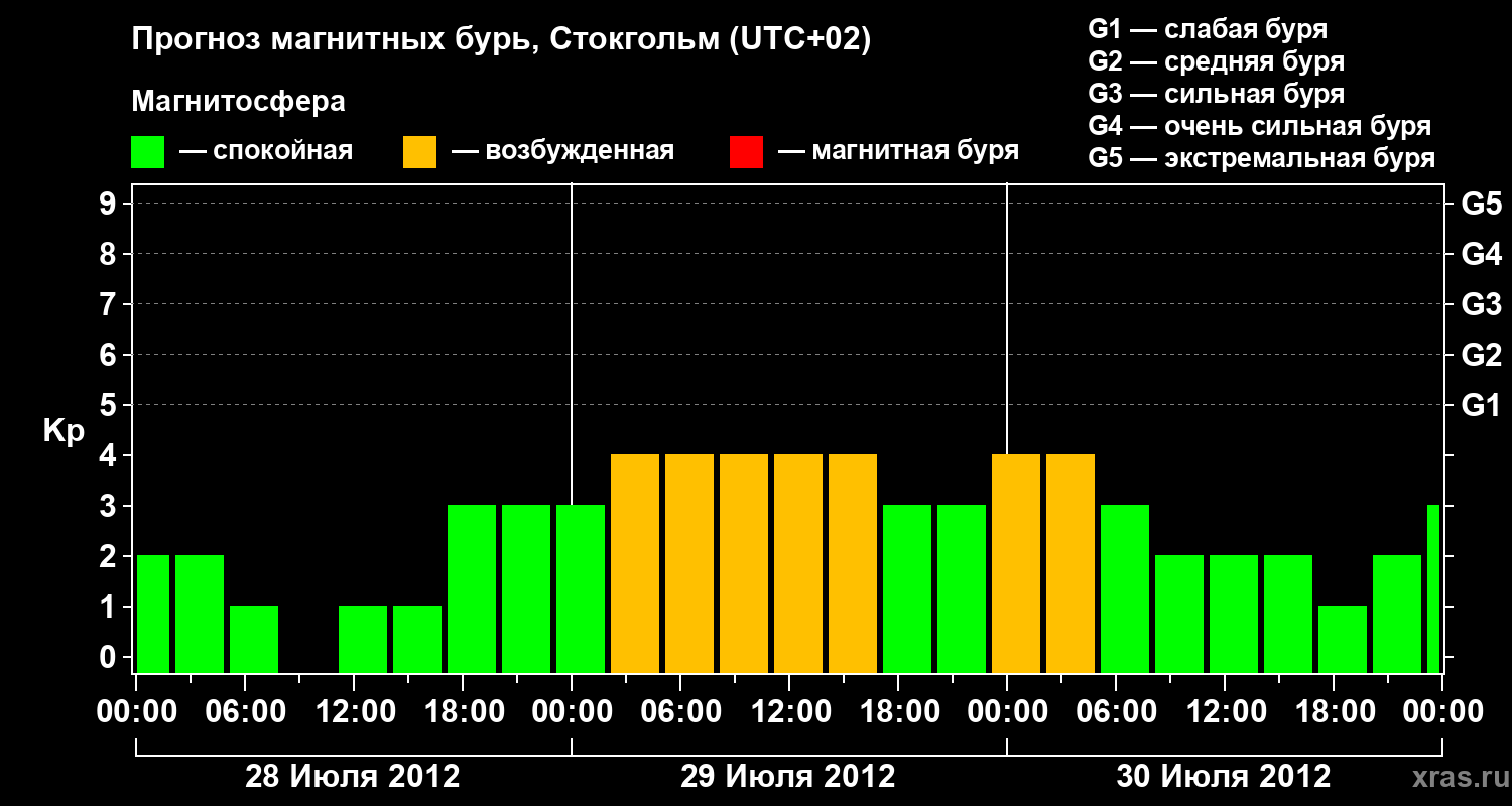 Прогноз магнитных бурь в Стокгольме — 28 июля 2012 года