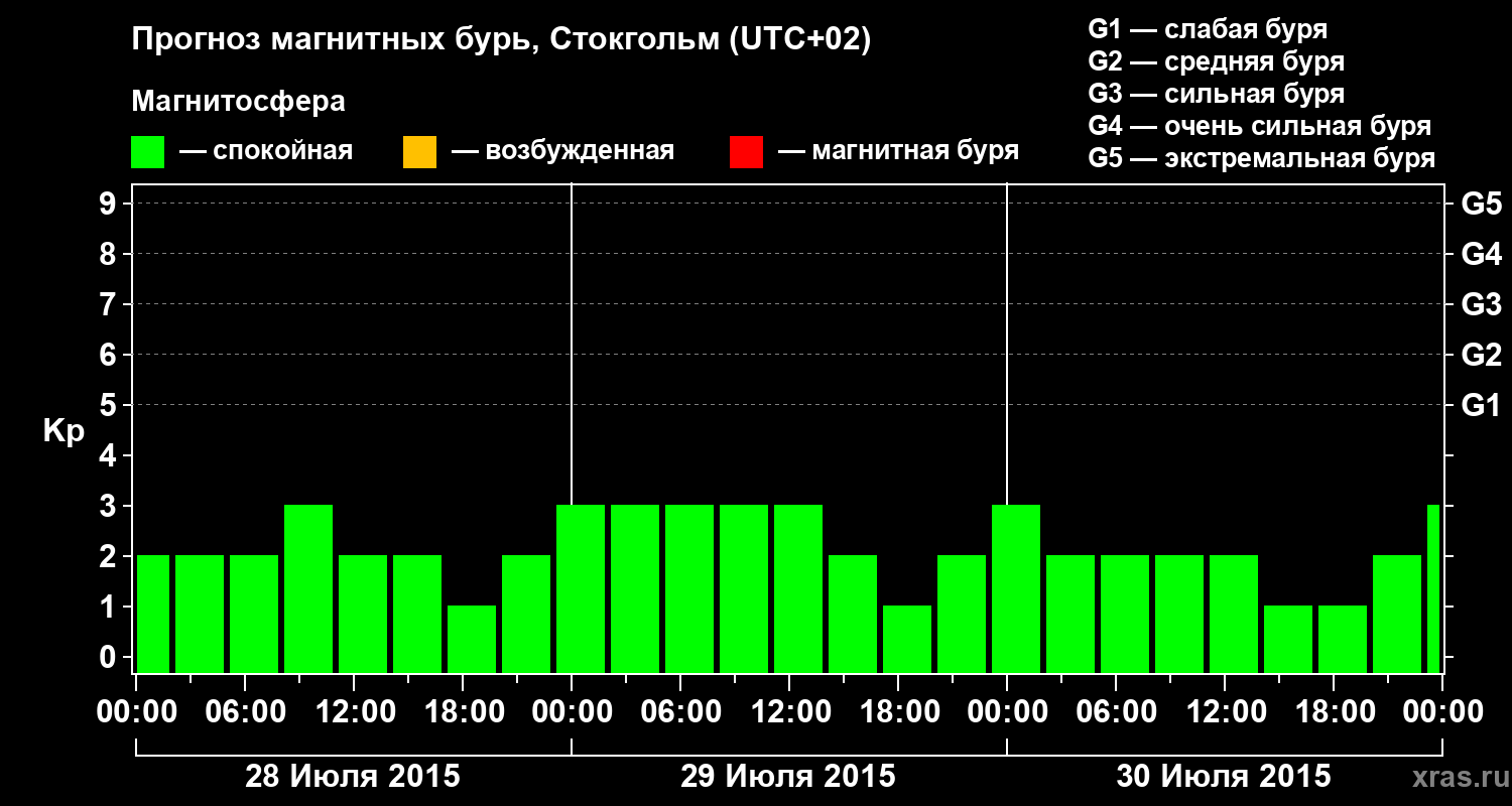 Прогноз магнитных бурь в Стокгольме — 28 июля 2015 года