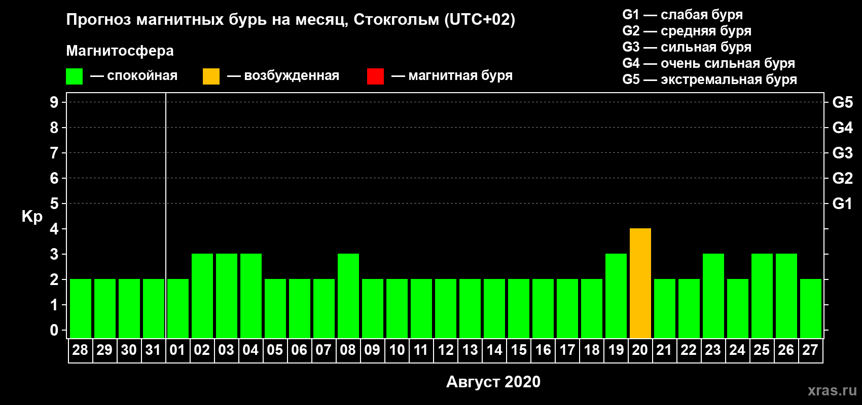Прогноз магнитных бурь в Стокгольме — 28 июля 2020 года