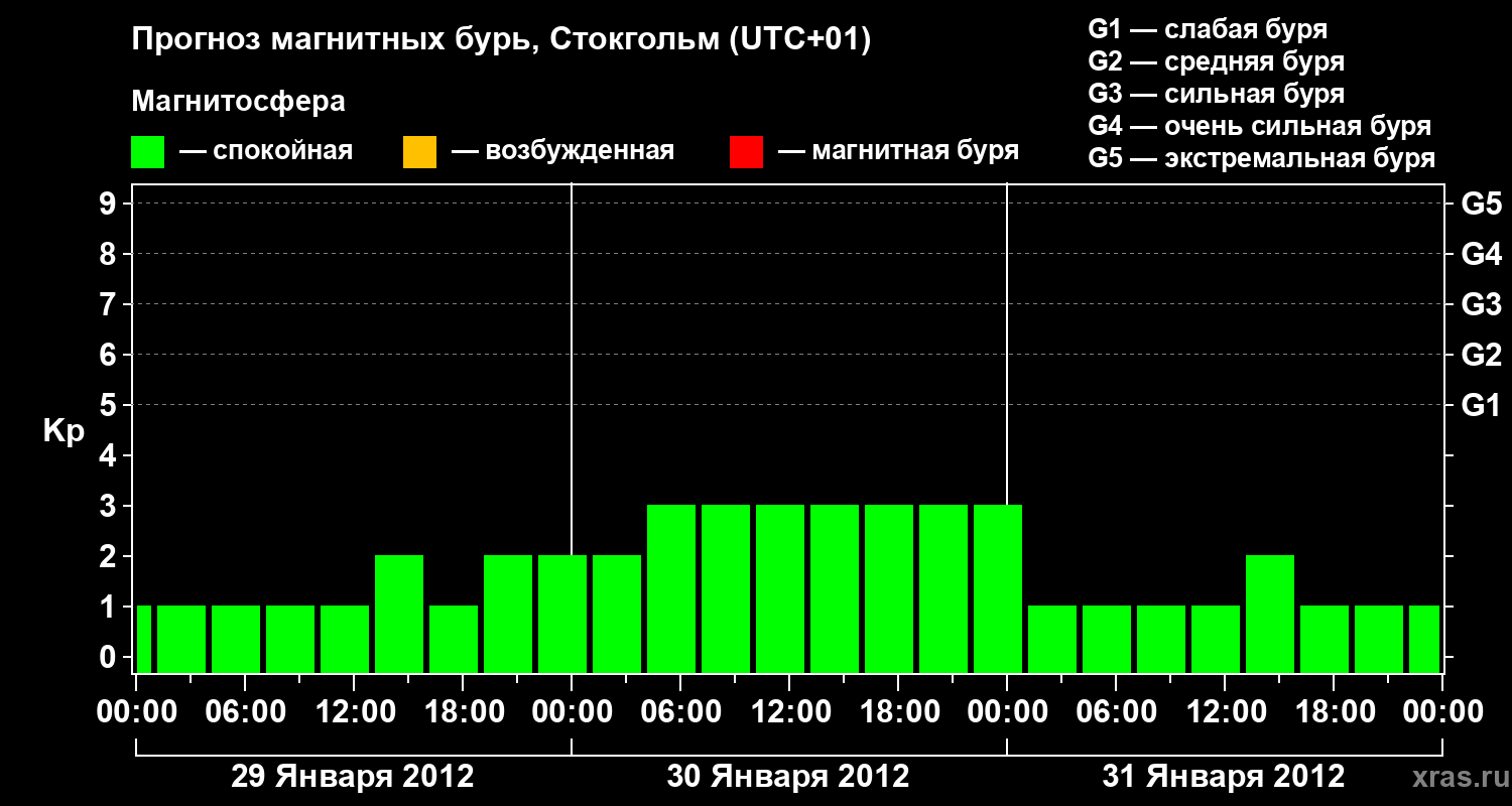 Прогноз магнитных бурь в Стокгольме — 29 января 2012 года