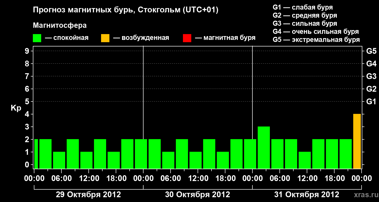 Прогноз магнитных бурь в Стокгольме — 29 октября 2012 года