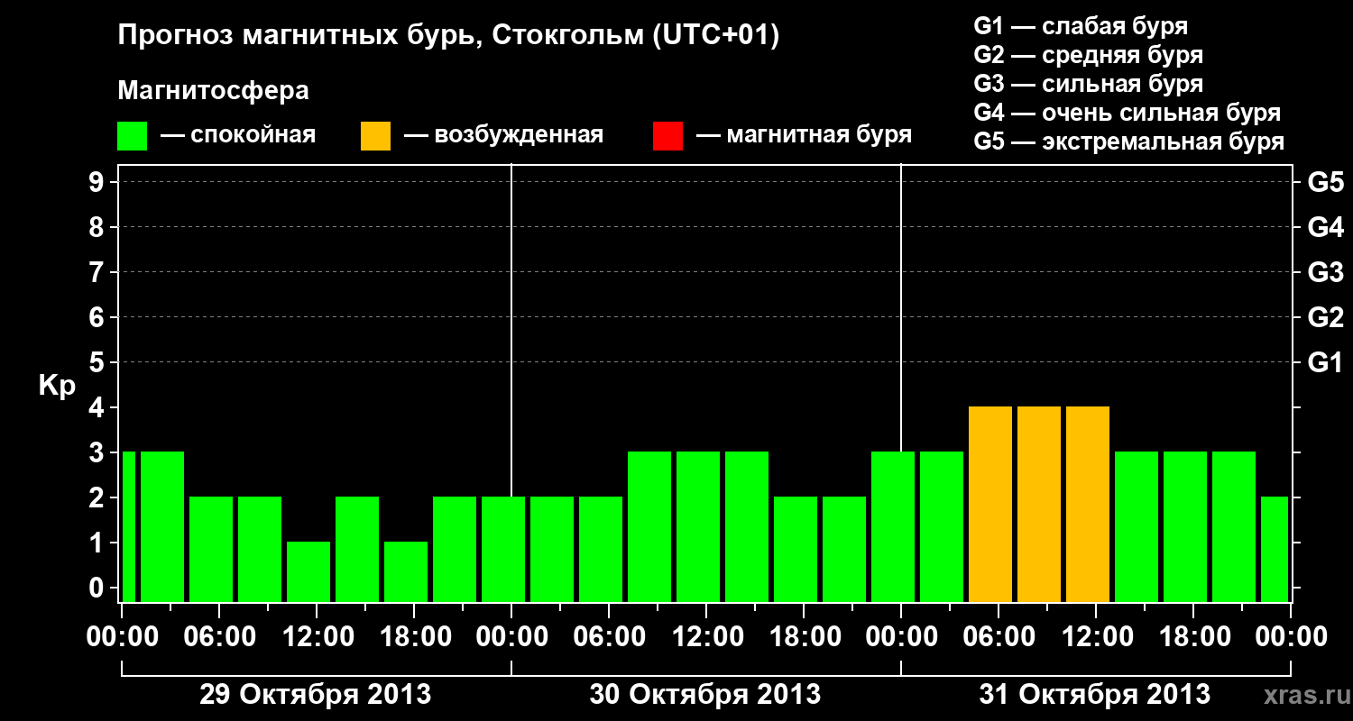 Прогноз магнитных бурь в Стокгольме — 29 октября 2013 года