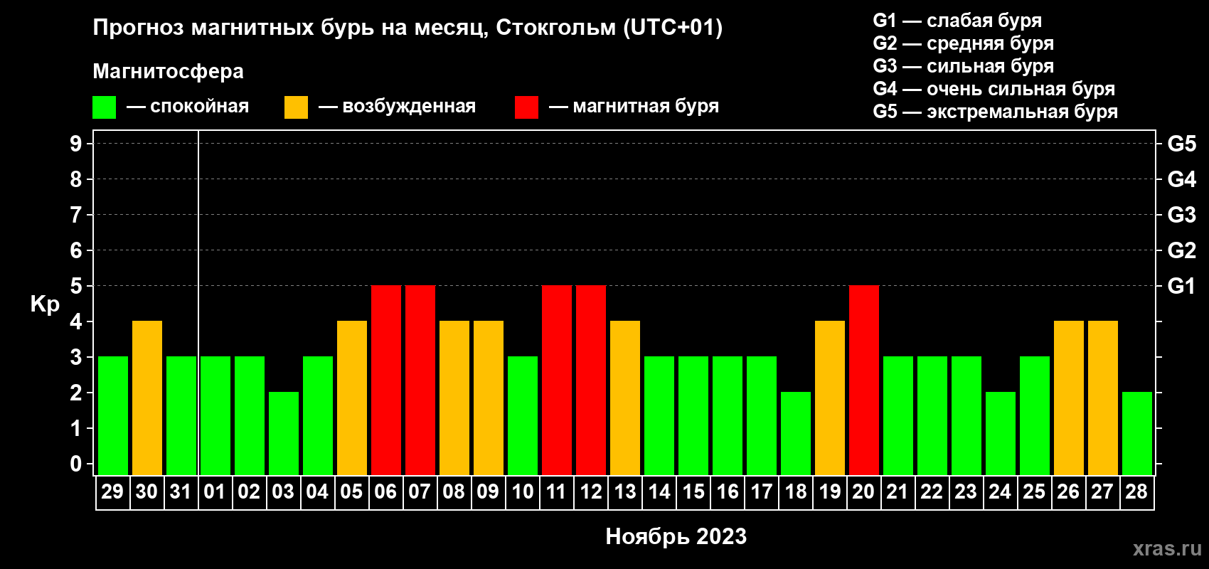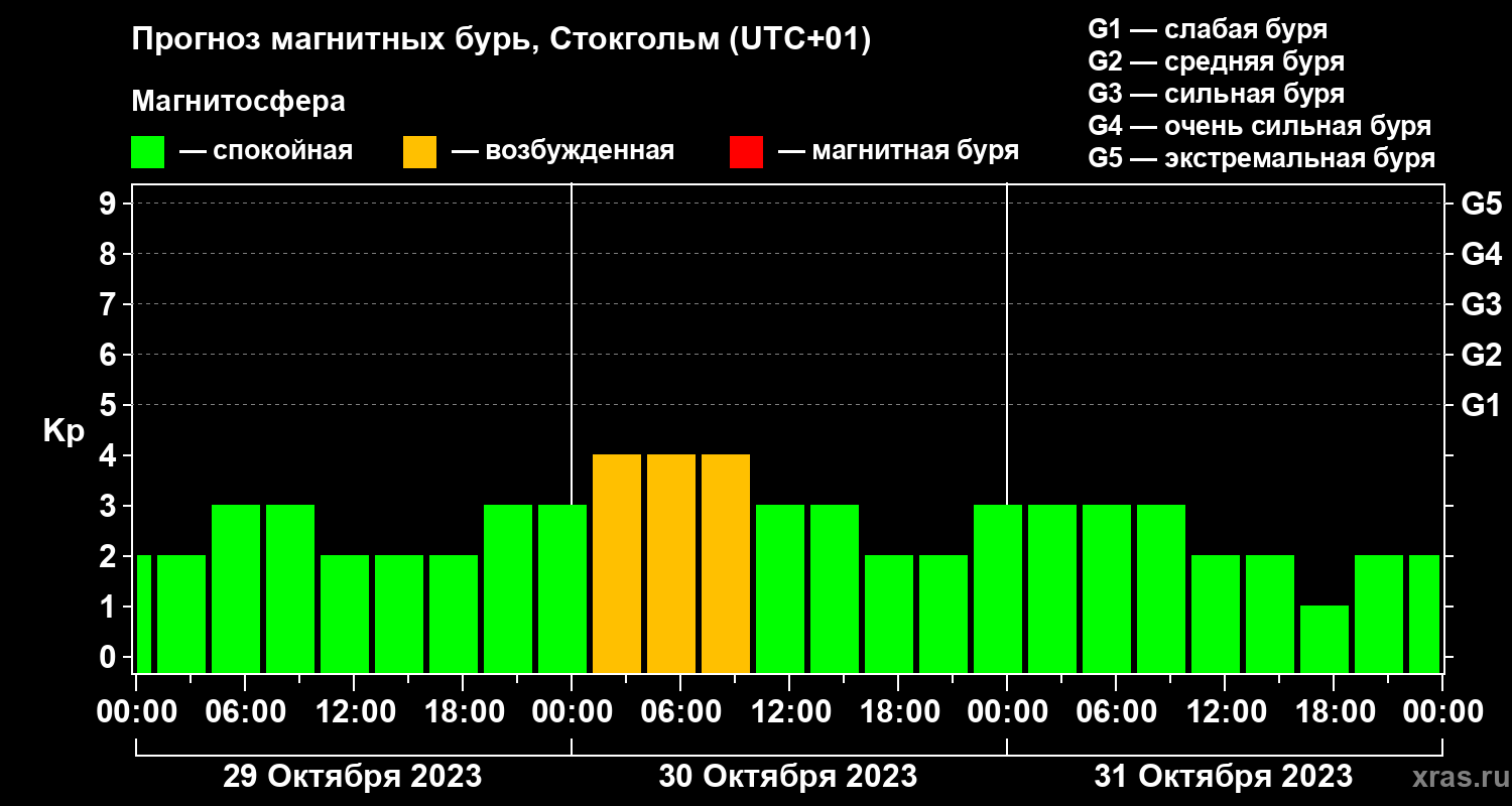 Прогноз магнитных бурь в Стокгольме — 29 октября 2023 года