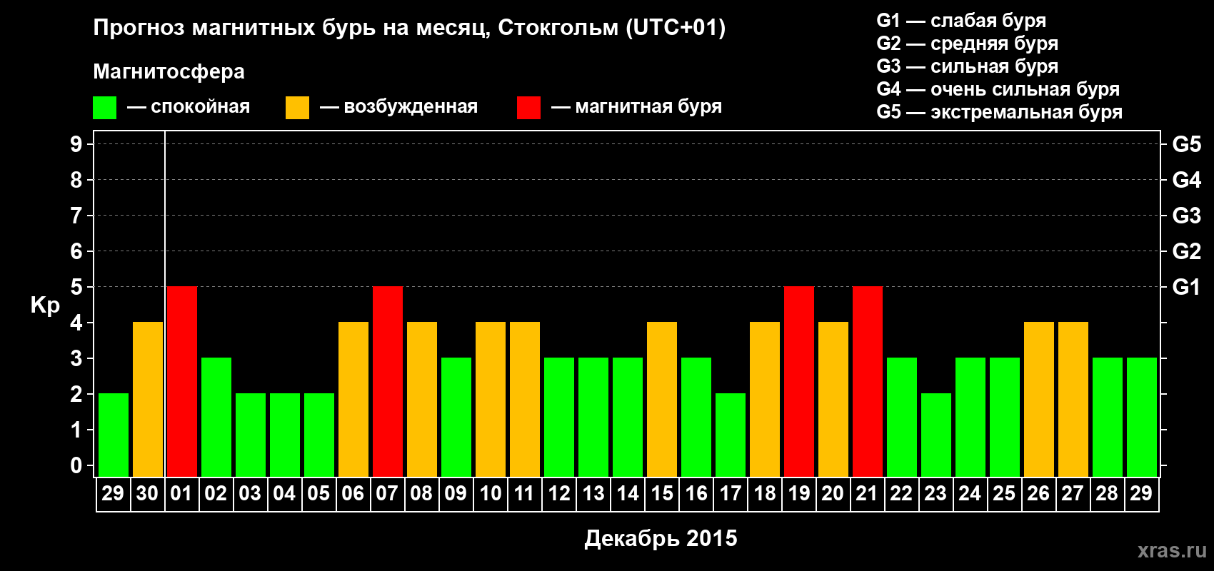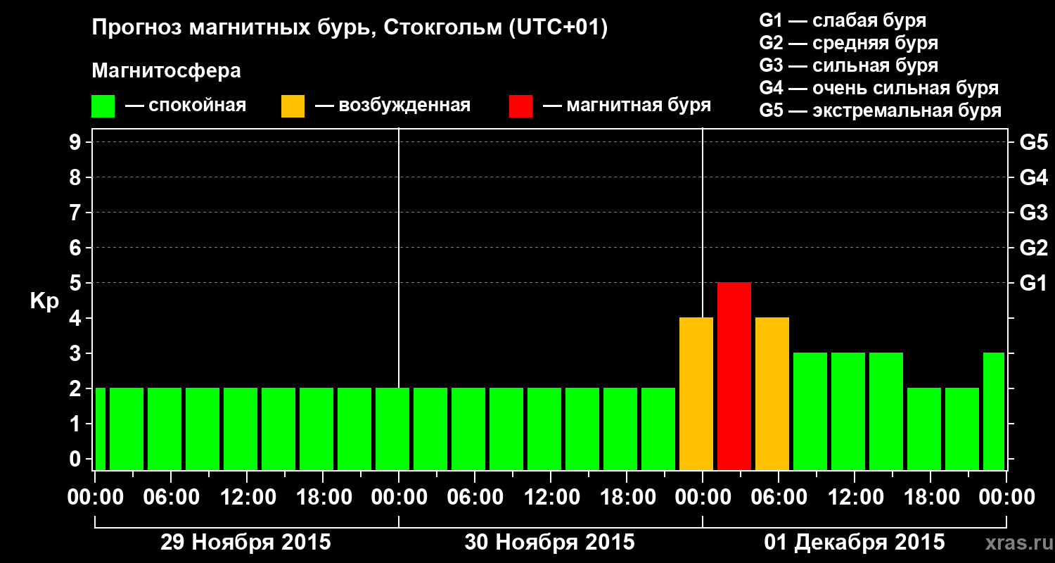 Прогноз магнитных бурь в Стокгольме — 29 ноября 2015 года