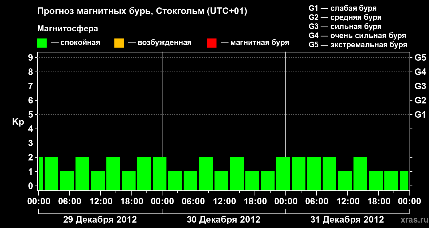 Прогноз магнитных бурь в Стокгольме — 29 декабря 2012 года