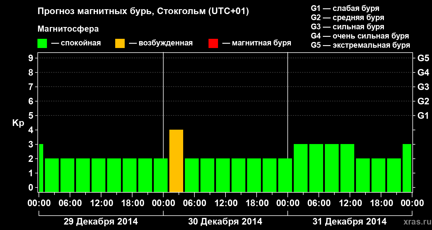 Прогноз магнитных бурь в Стокгольме — 29 декабря 2014 года