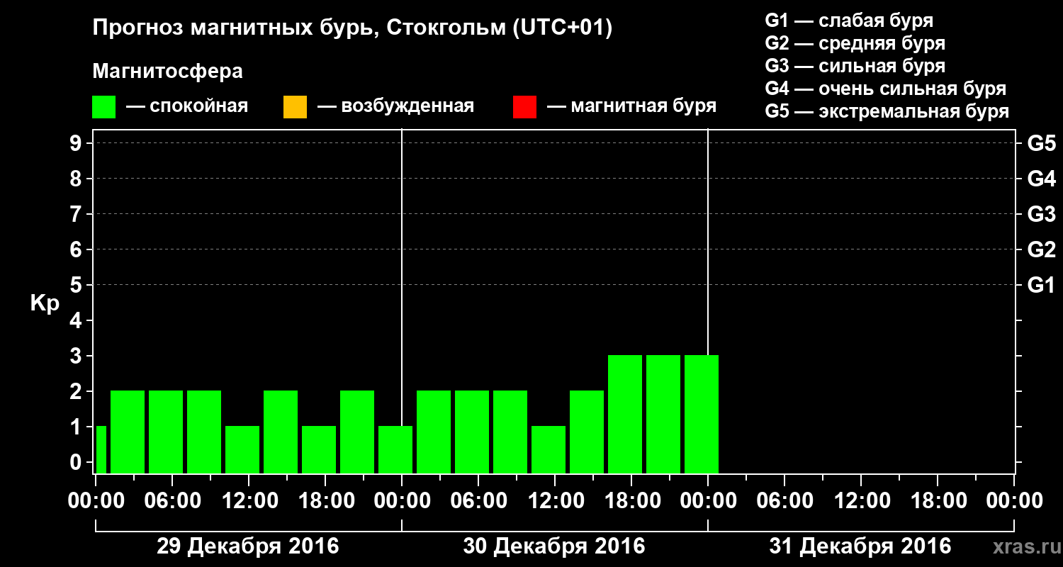 Прогноз магнитных бурь в Стокгольме — 29 декабря 2016 года