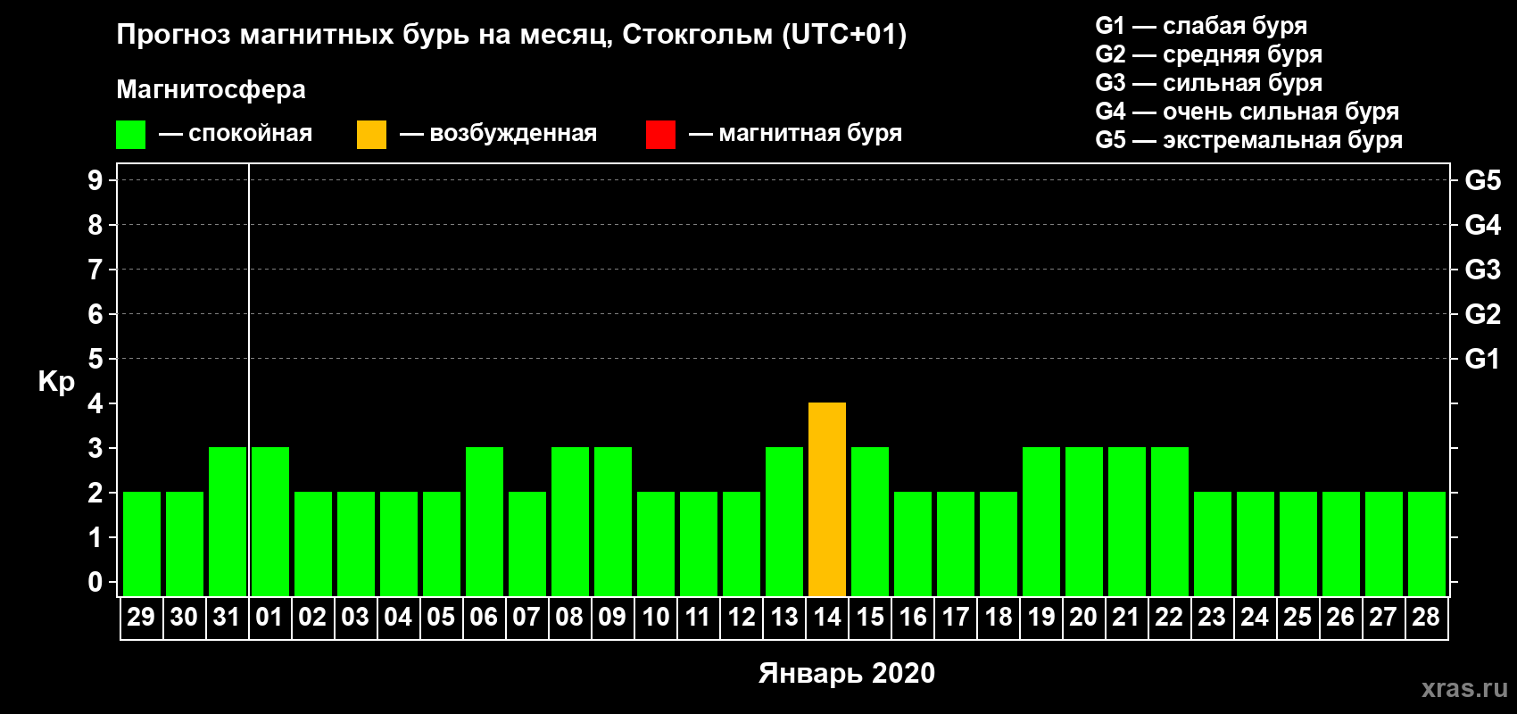 Прогноз магнитных бурь в Стокгольме — 29 декабря 2019 года