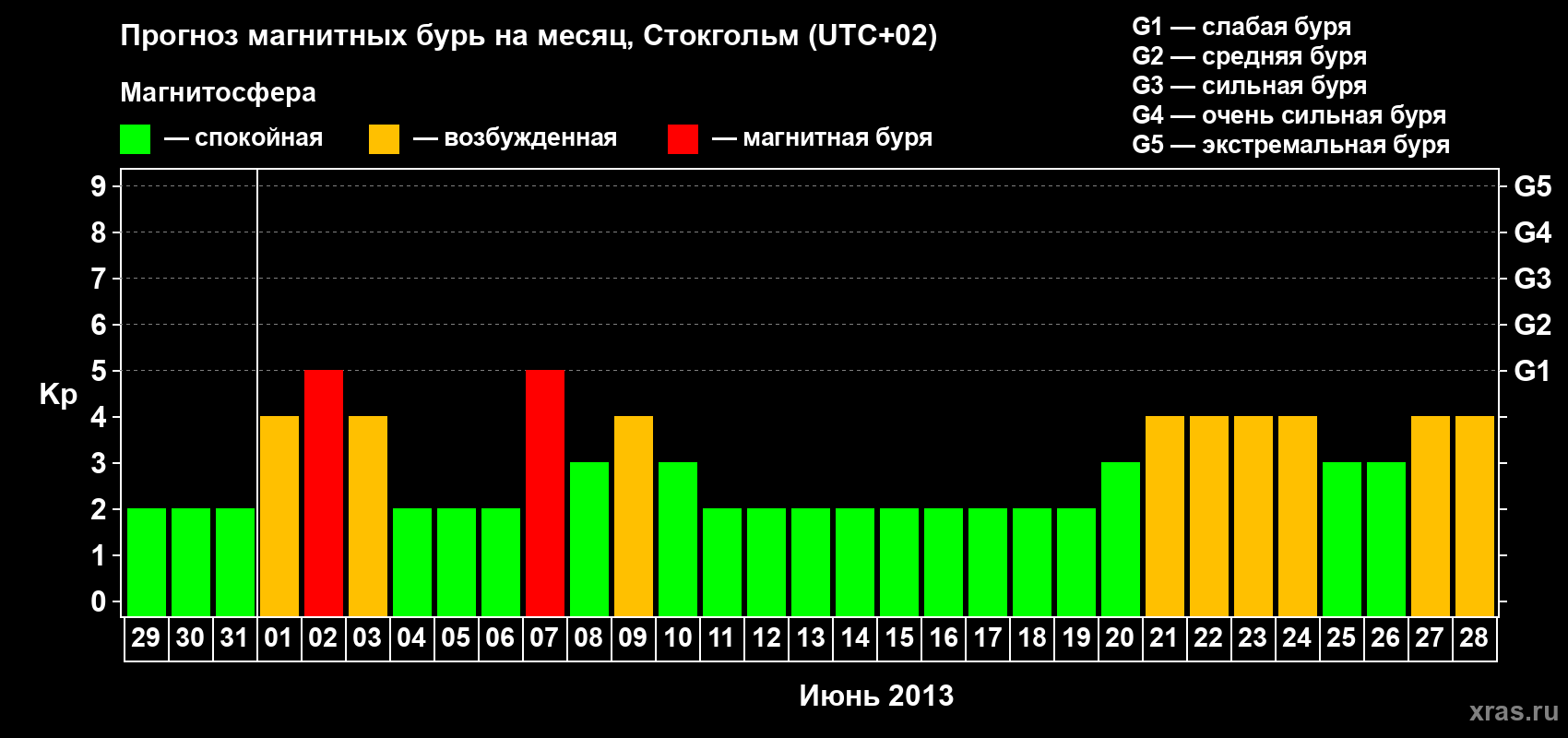Прогноз магнитных бурь в Стокгольме — 29 мая 2013 года