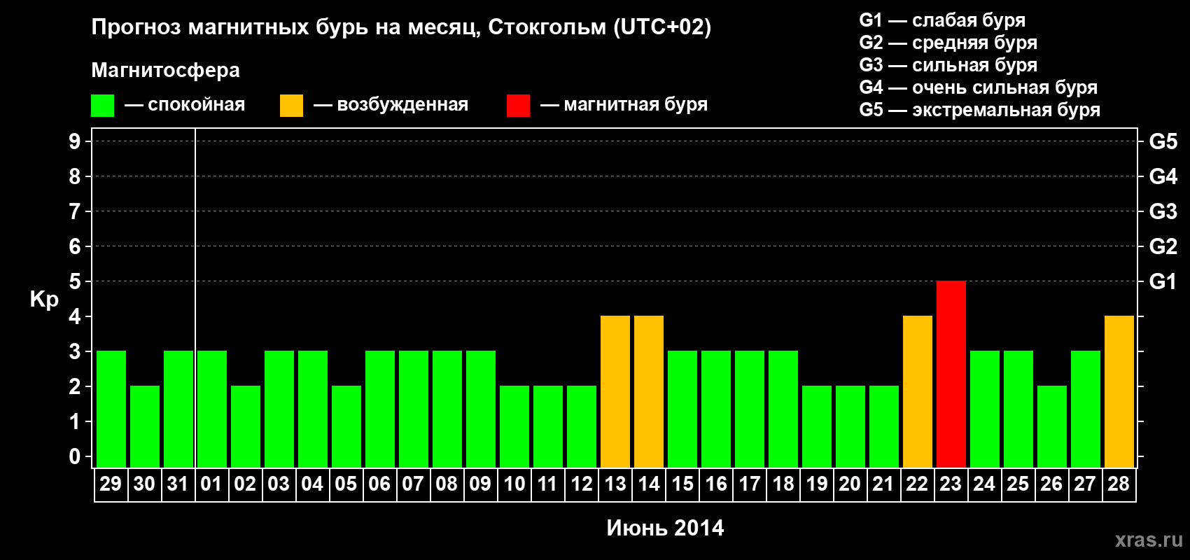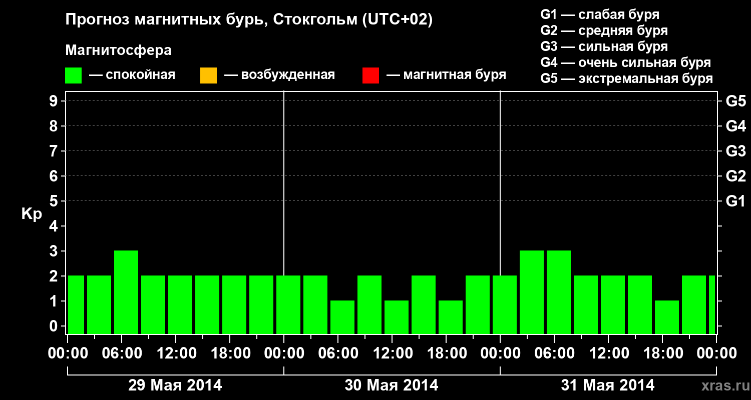 Прогноз магнитных бурь в Стокгольме — 29 мая 2014 года