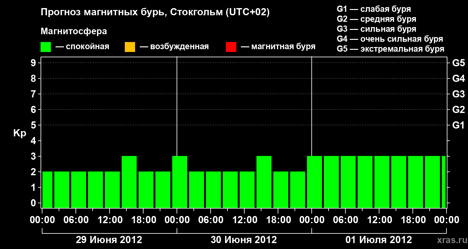Прогноз магнитных бурь в Стокгольме — 29 июня 2012 года