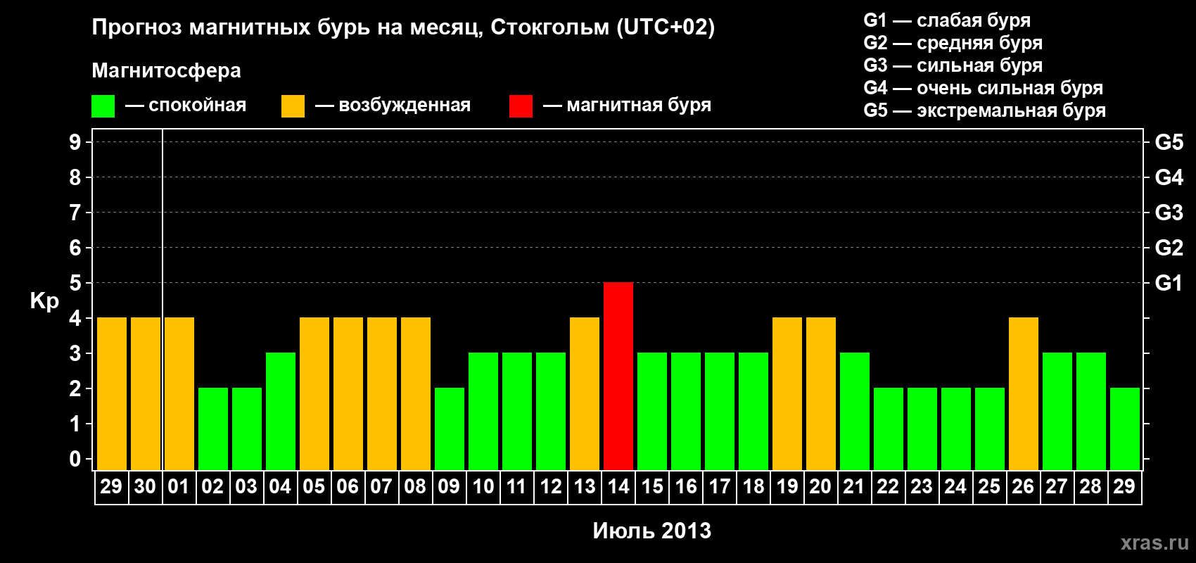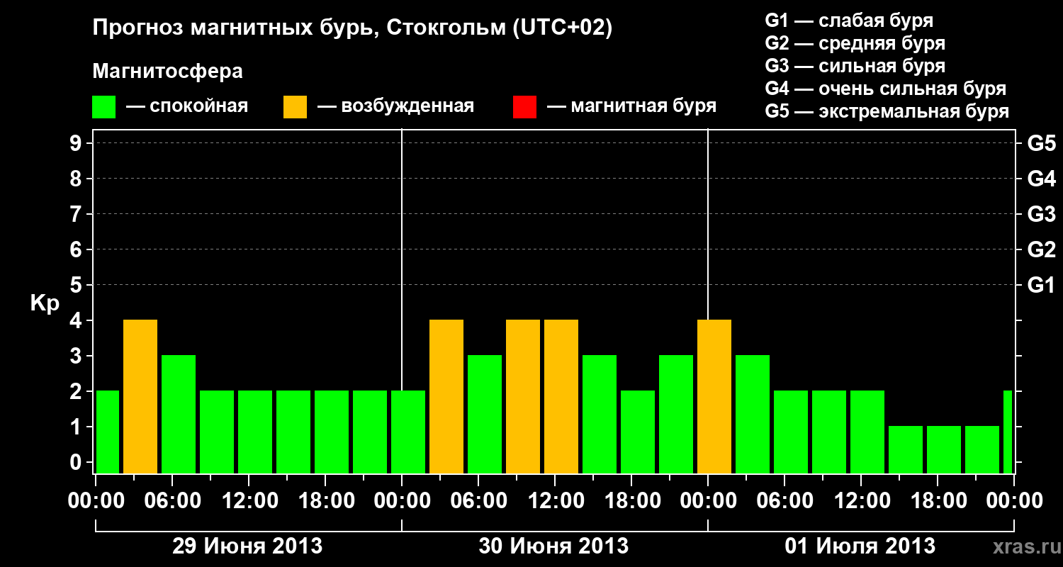 Прогноз магнитных бурь в Стокгольме — 29 июня 2013 года
