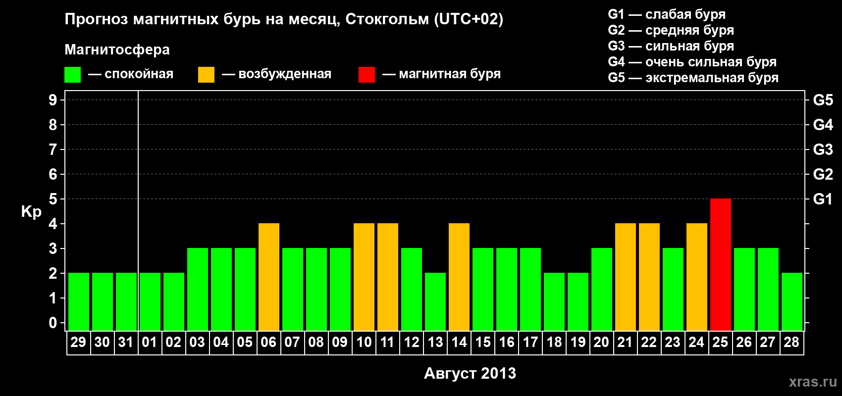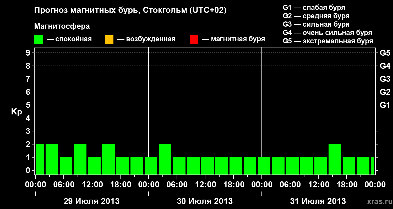 Прогноз магнитных бурь в Стокгольме — 29 июля 2013 года