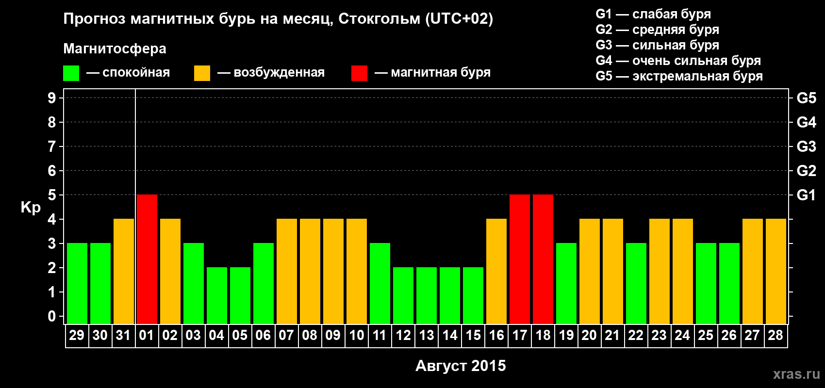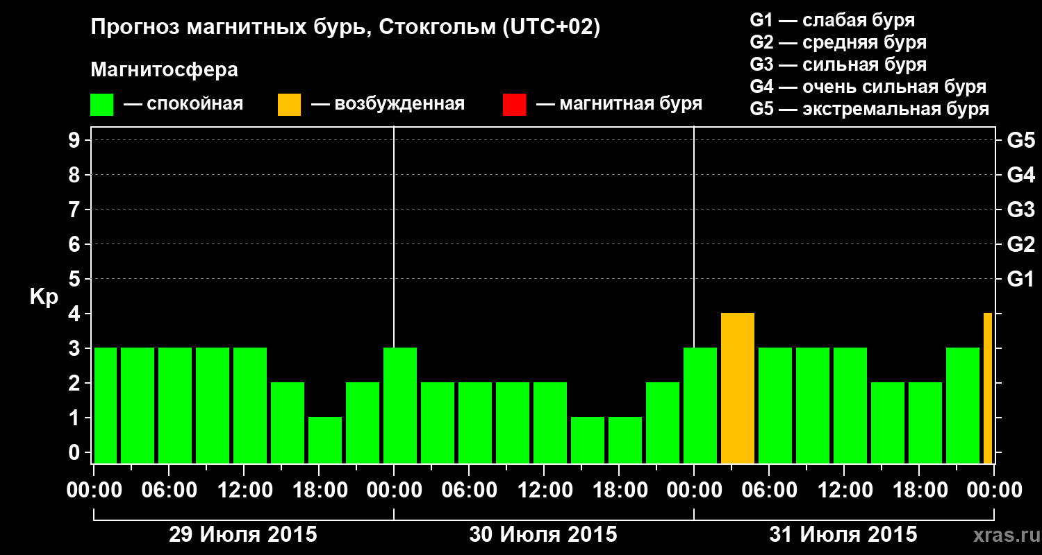 Прогноз магнитных бурь в Стокгольме — 29 июля 2015 года