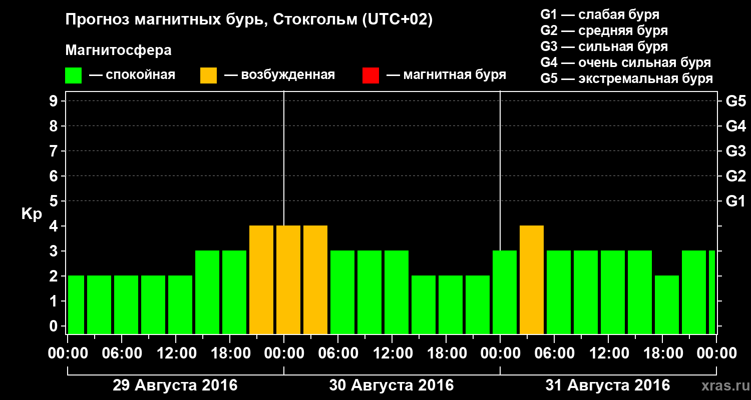 Прогноз магнитных бурь в Стокгольме — 29 августа 2016 года