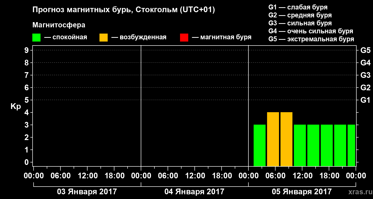 Прогноз магнитных бурь в Стокгольме — 3 января 2017 года