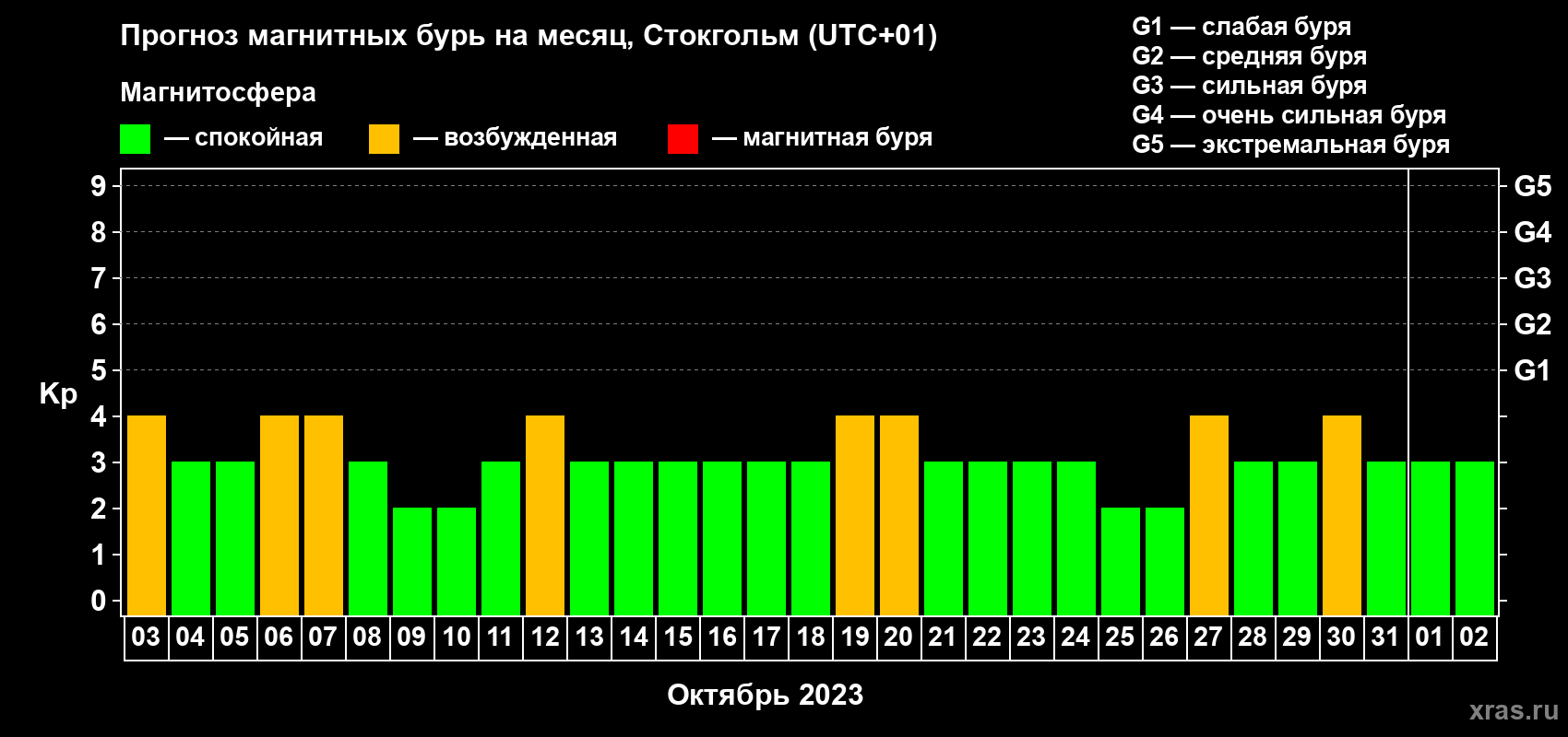 Прогноз магнитных бурь в Стокгольме — 3 октября 2023 года