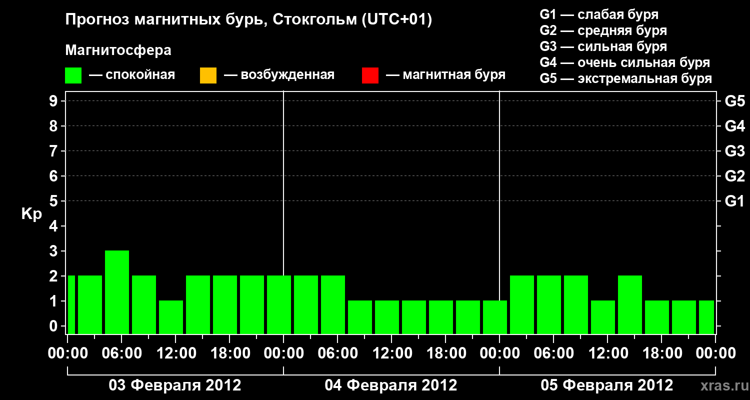 Прогноз магнитных бурь в Стокгольме — 3 февраля 2012 года