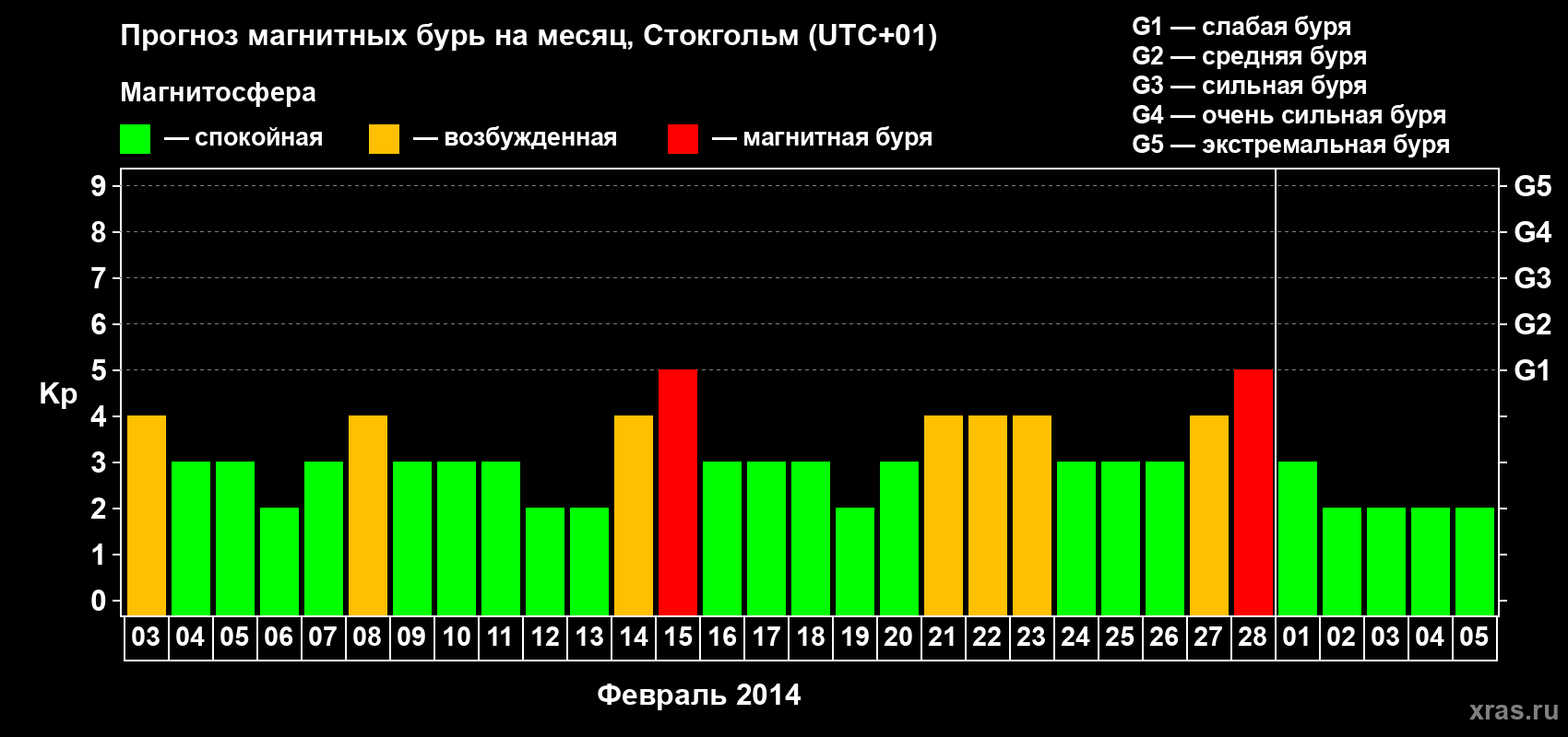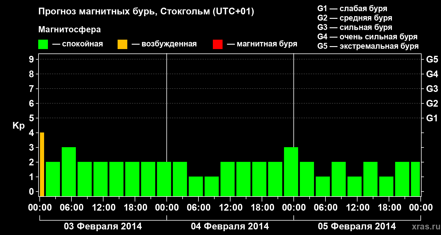 Прогноз магнитных бурь в Стокгольме — 3 февраля 2014 года