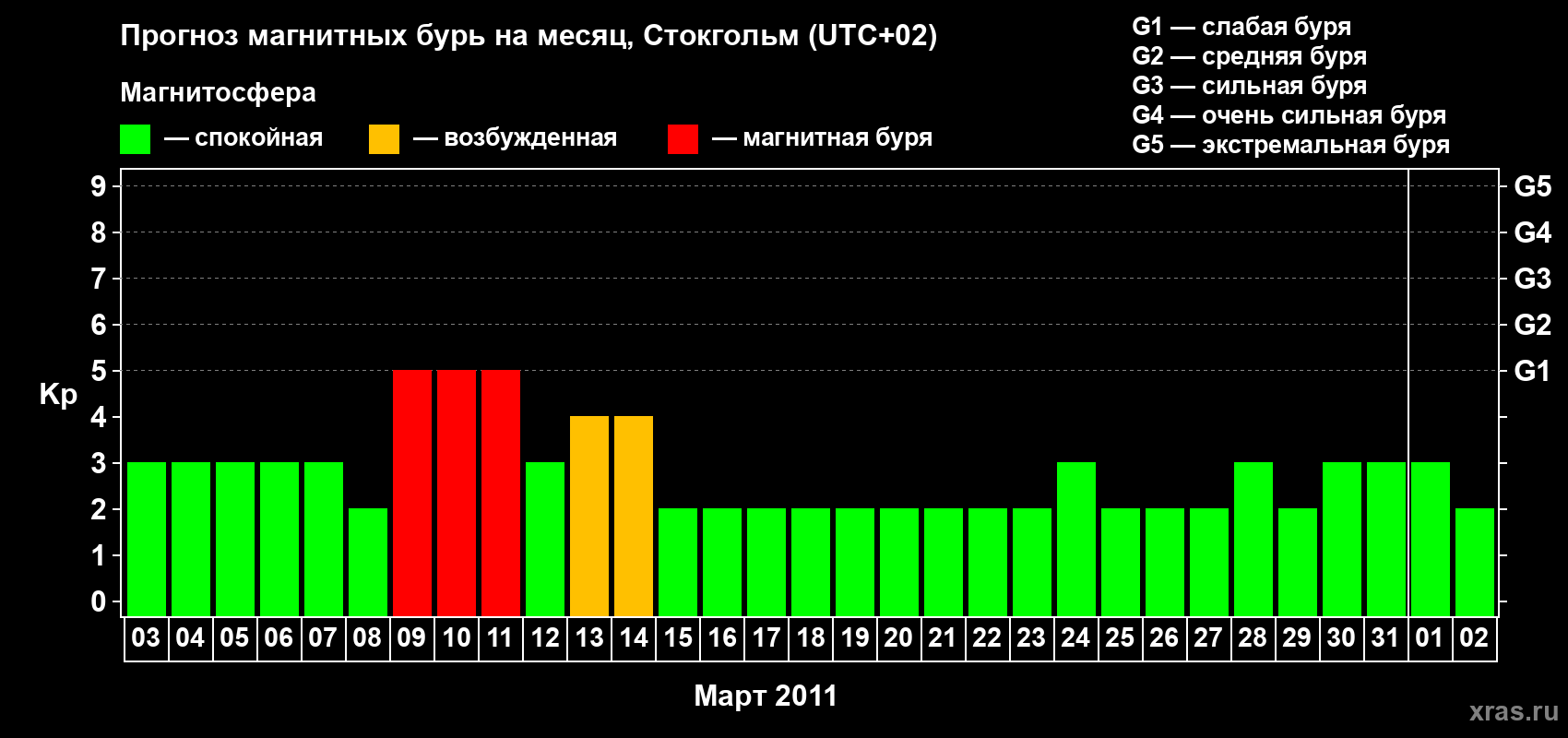 Прогноз магнитных бурь в Стокгольме — 3 марта 2011 года