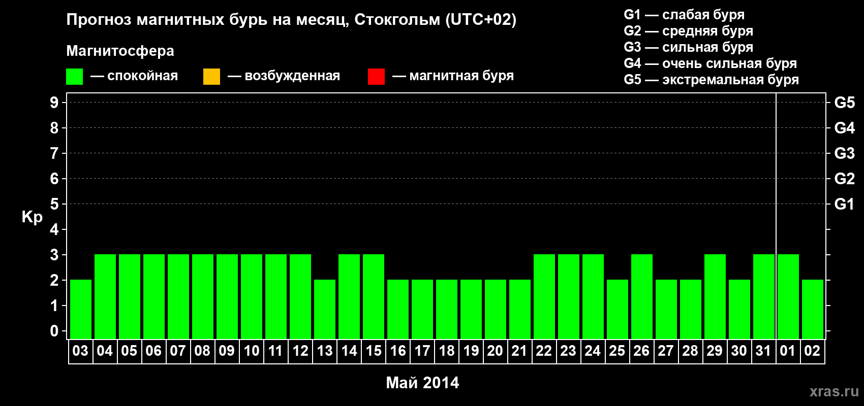 Прогноз магнитных бурь в Стокгольме — 3 мая 2014 года