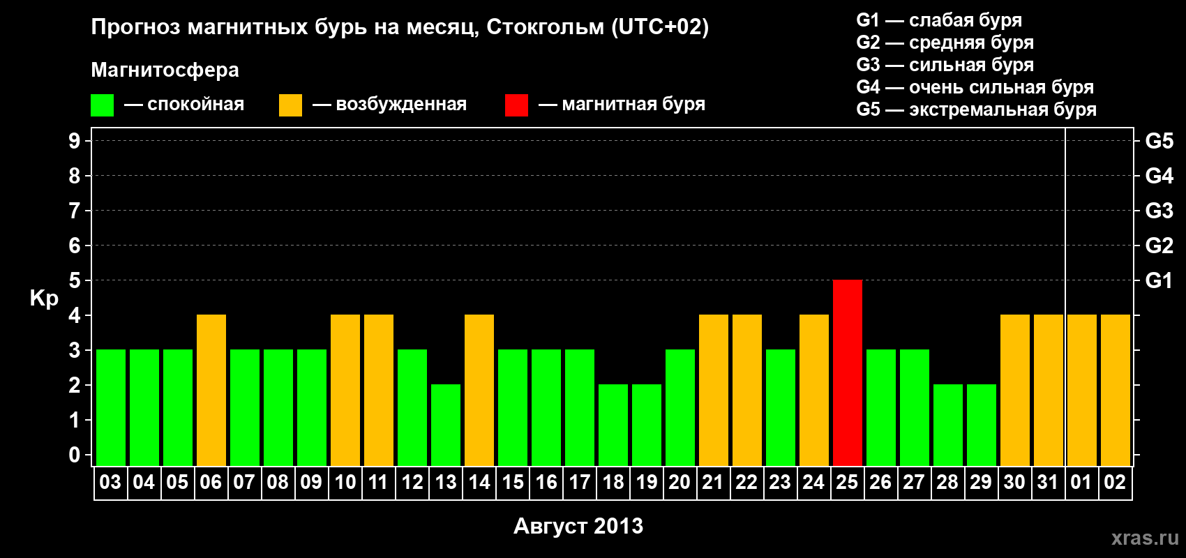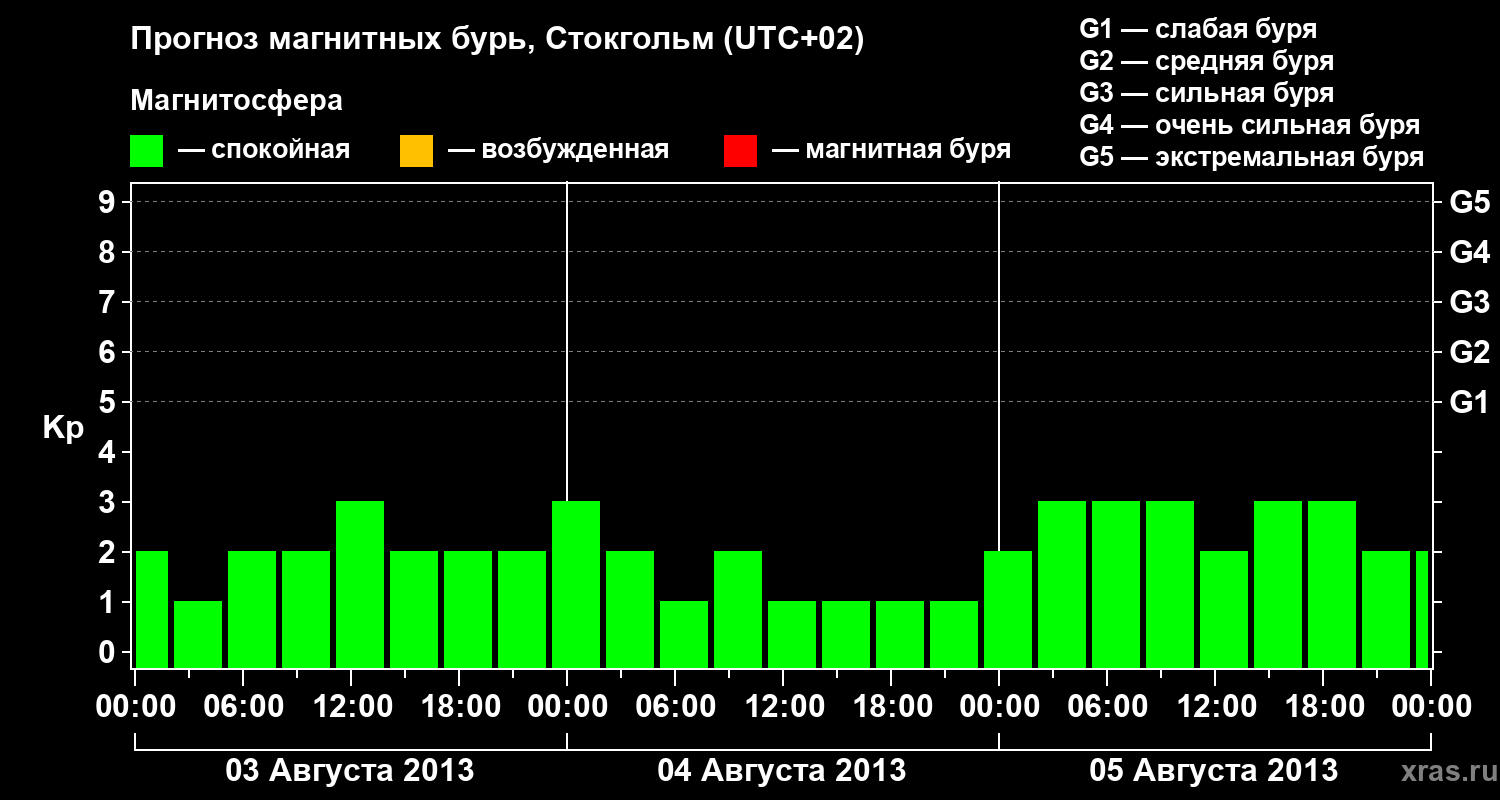 Прогноз магнитных бурь в Стокгольме — 3 августа 2013 года