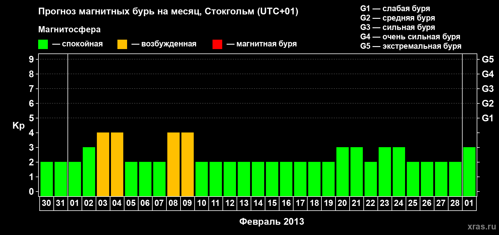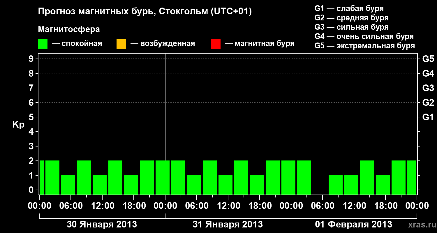 Прогноз магнитных бурь в Стокгольме — 30 января 2013 года