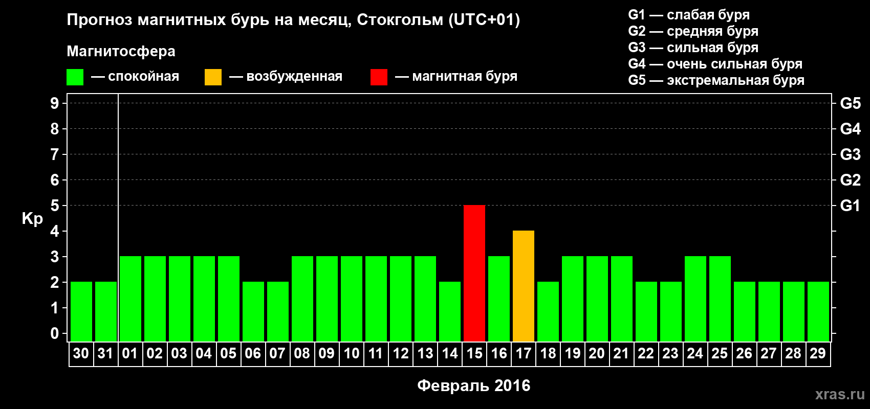 Прогноз магнитных бурь в Стокгольме — 30 января 2016 года