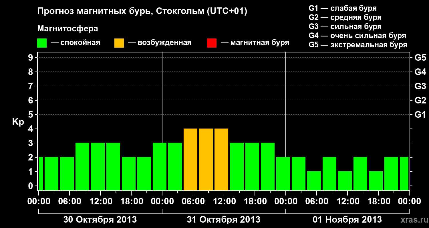 Прогноз магнитных бурь в Стокгольме — 30 октября 2013 года