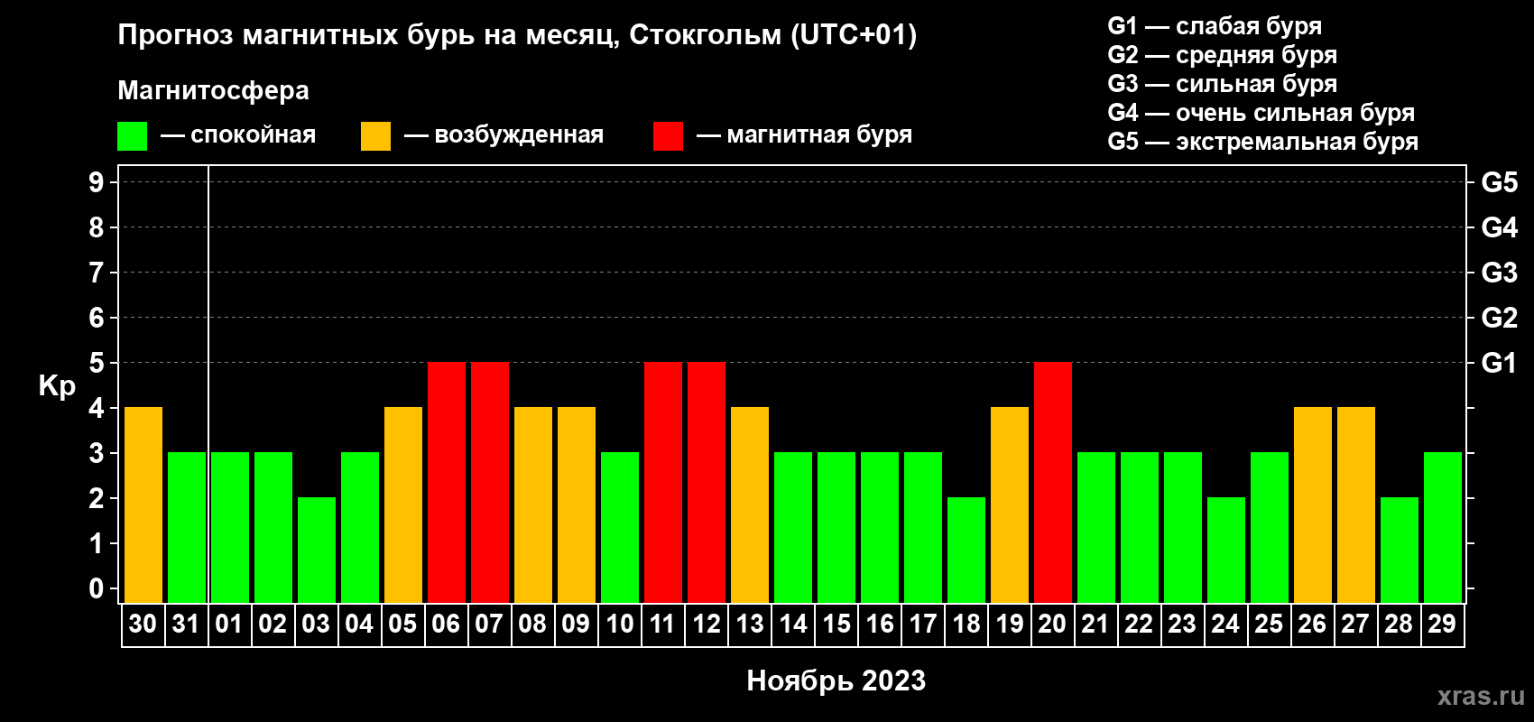Прогноз магнитных бурь в Стокгольме — 30 октября 2023 года