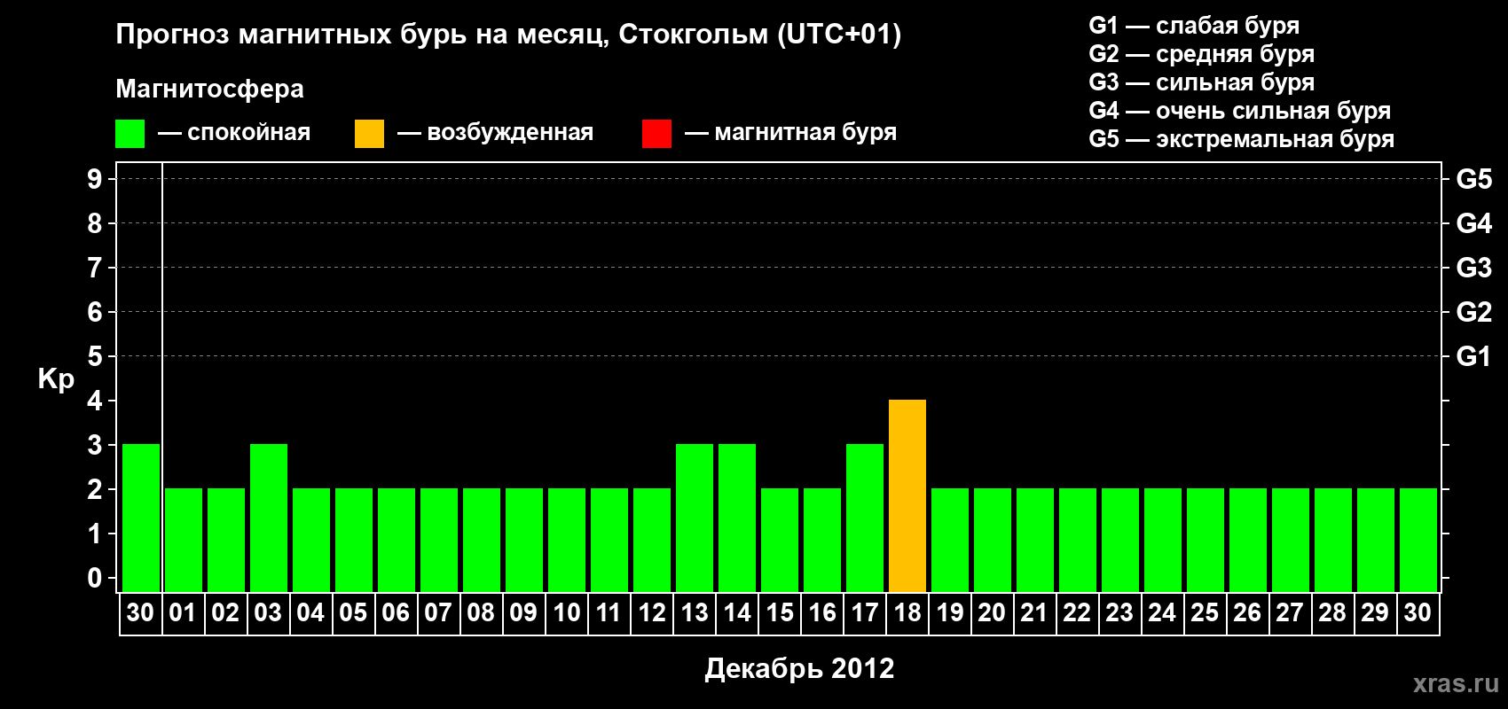 Прогноз магнитных бурь в Стокгольме — 30 ноября 2012 года