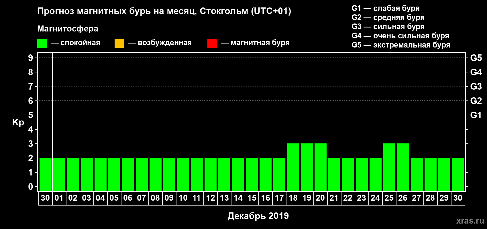 Прогноз магнитных бурь в Стокгольме — 30 ноября 2019 года
