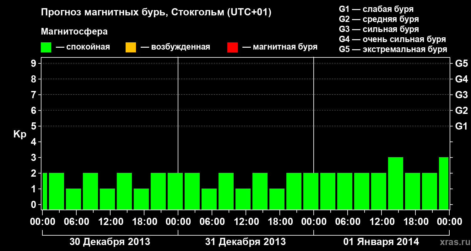 Прогноз магнитных бурь в Стокгольме — 30 декабря 2013 года