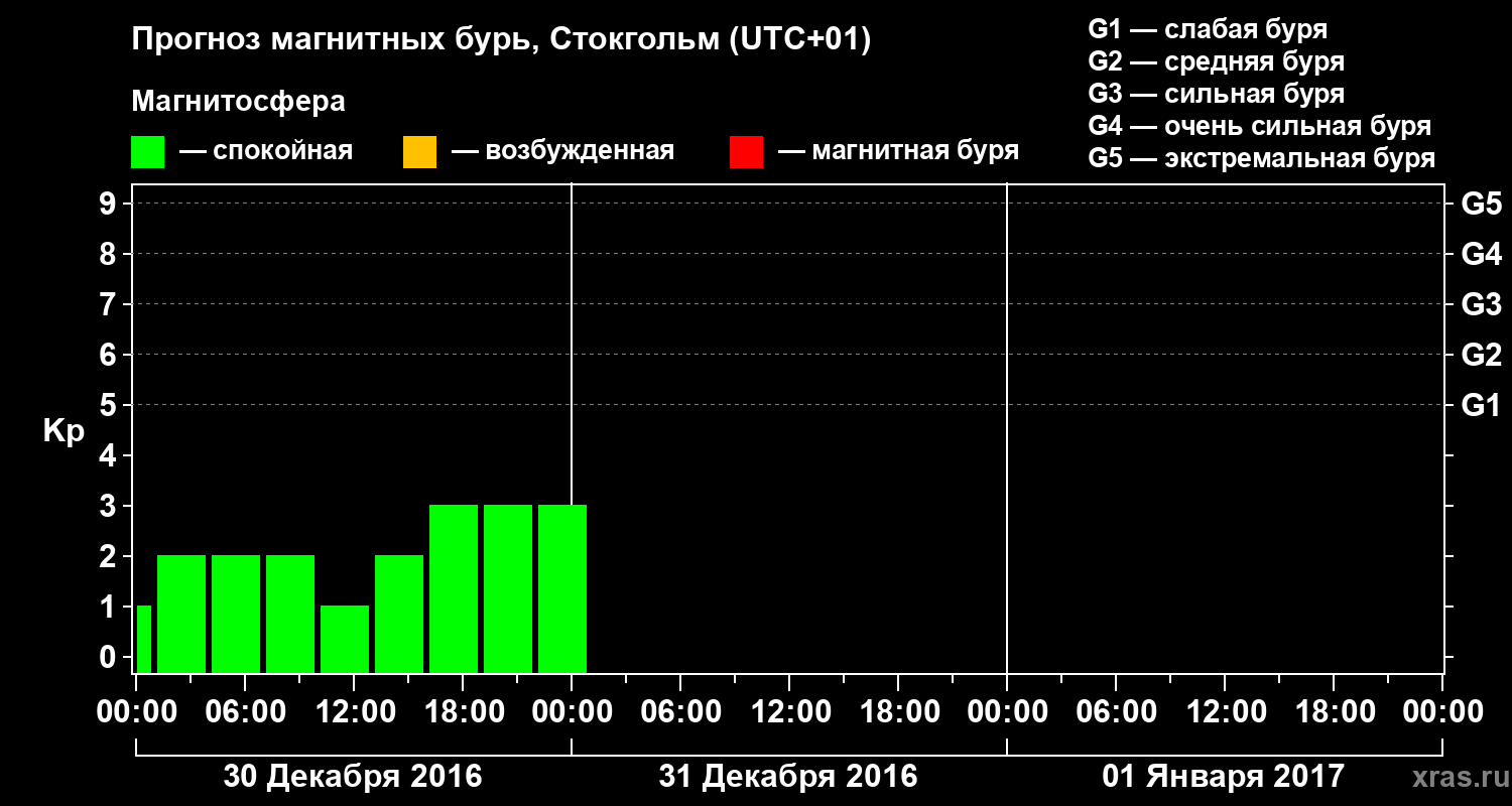 Прогноз магнитных бурь в Стокгольме — 30 декабря 2016 года
