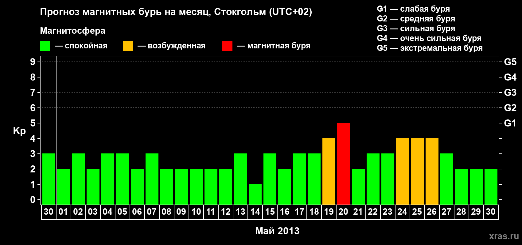 Прогноз магнитных бурь в Стокгольме — 30 апреля 2013 года
