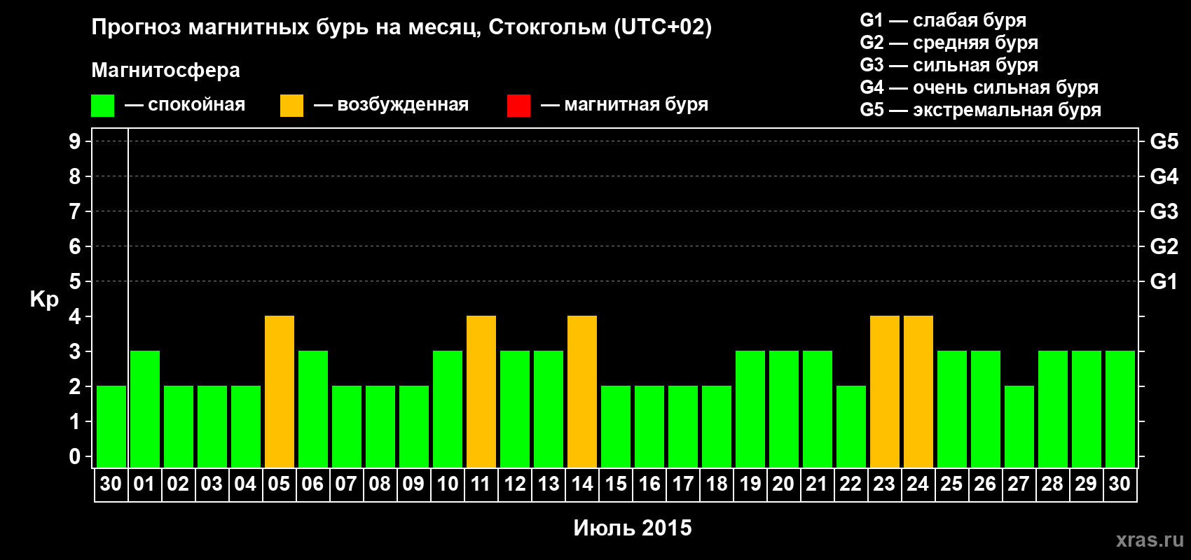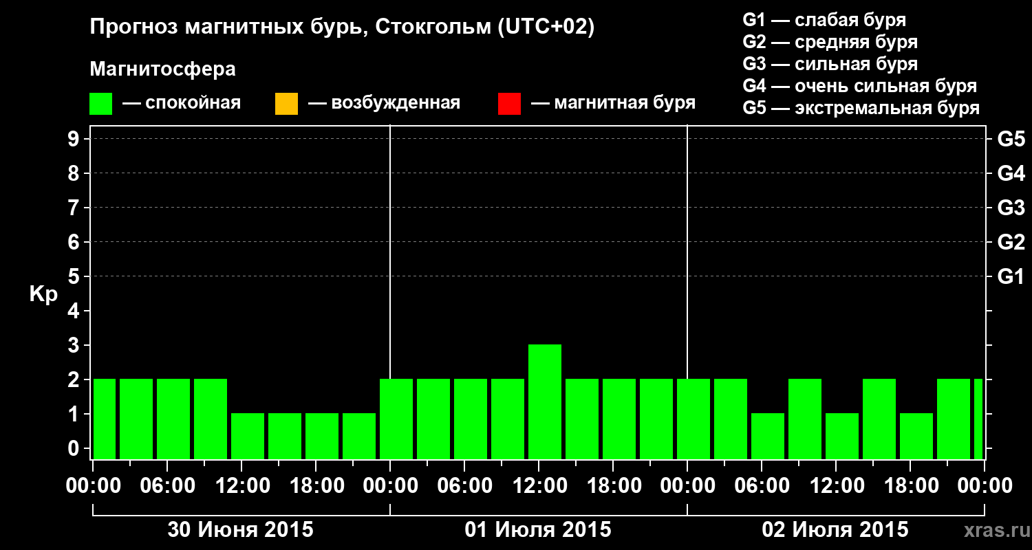 Прогноз магнитных бурь в Стокгольме — 30 июня 2015 года
