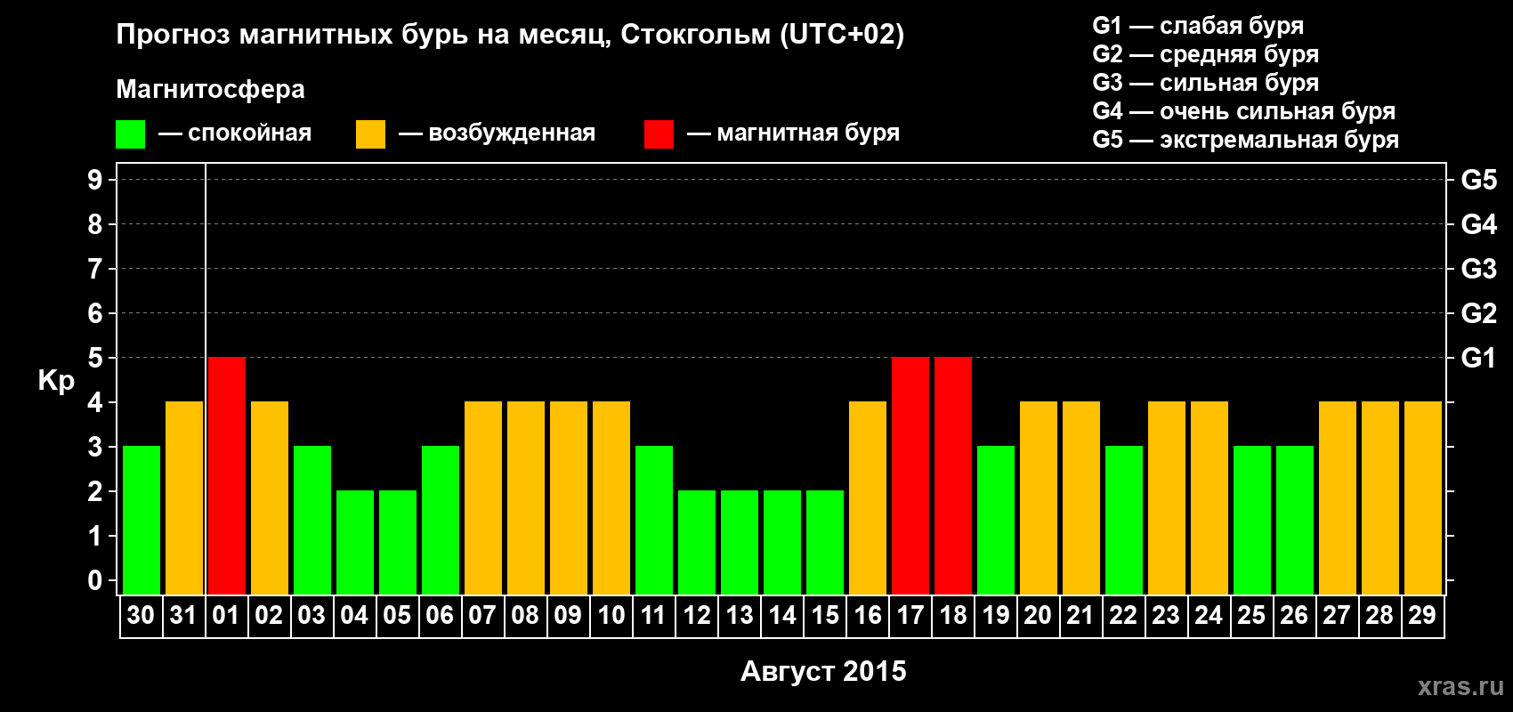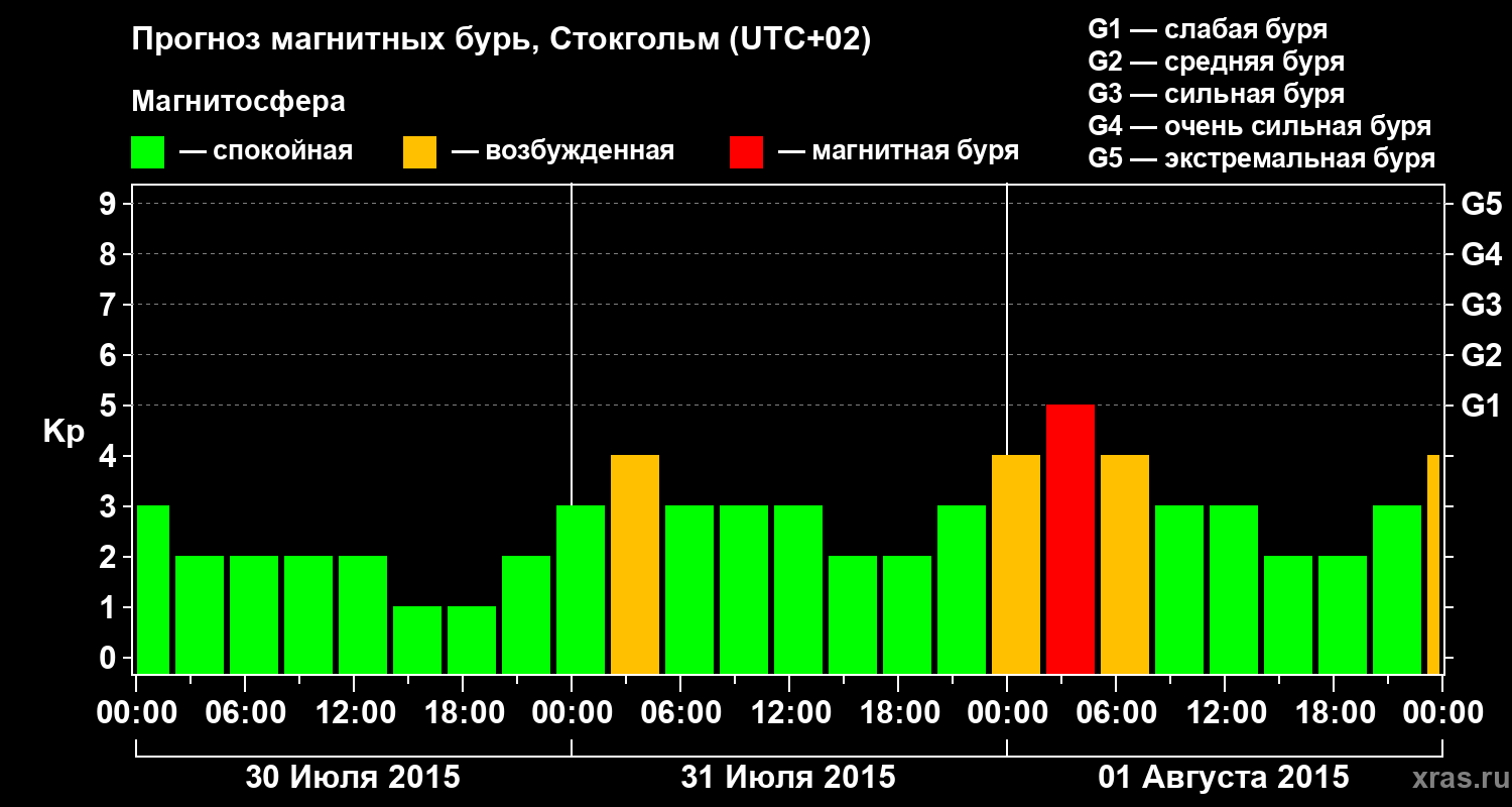Прогноз магнитных бурь в Стокгольме — 30 июля 2015 года